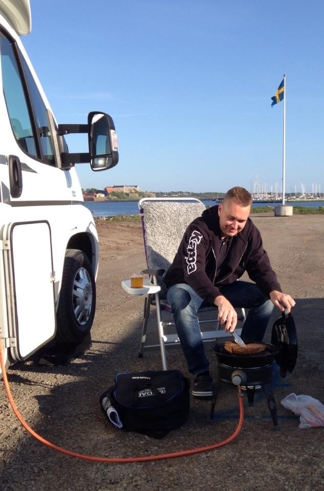 Grillade återigen fläskfile, nu på vår kanon Cadac safari chef!