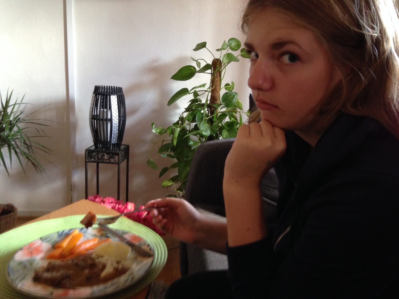 snart satt hon bredvid mej i soffan och smaskade i sig en portion också 😉