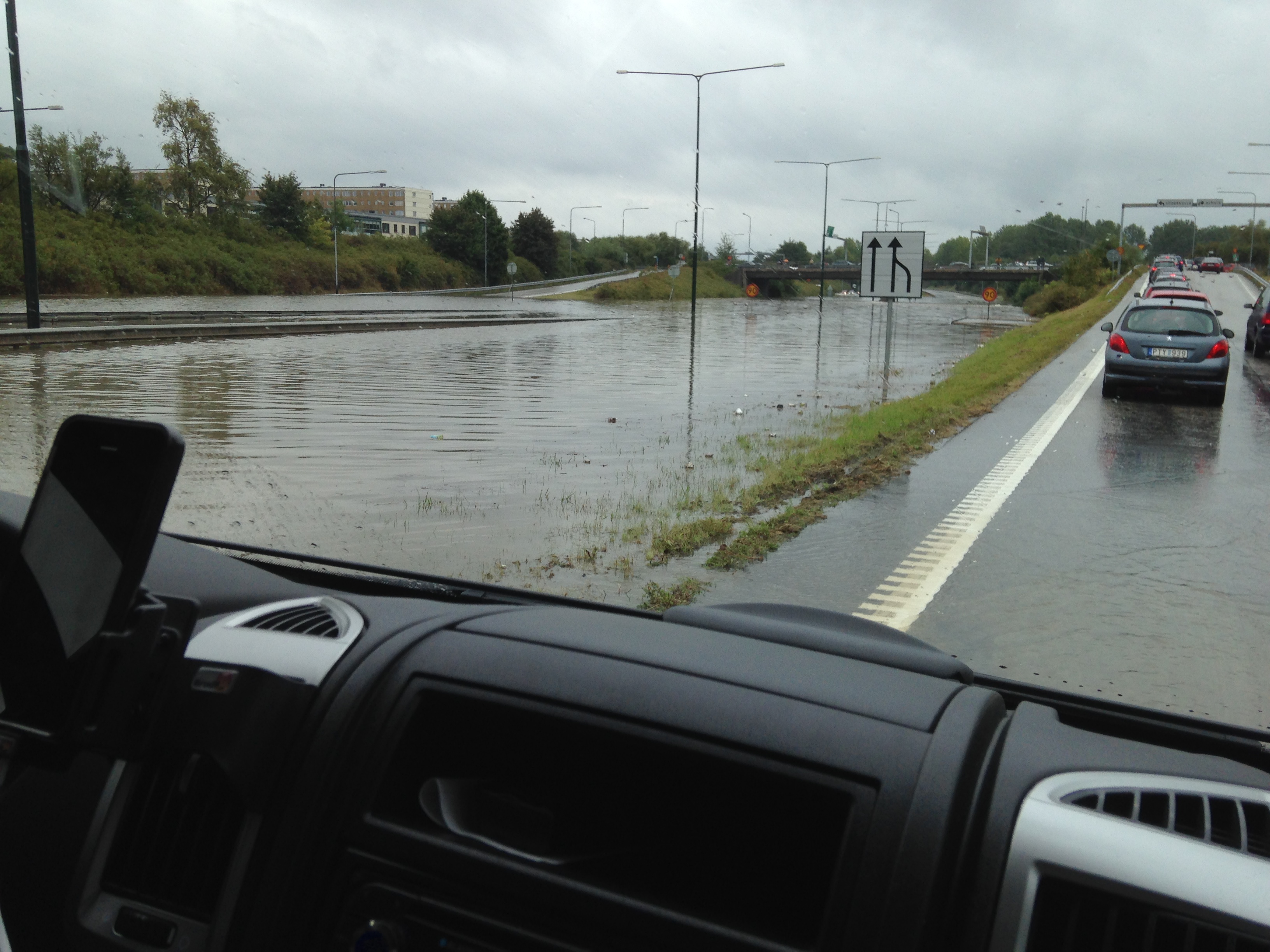 Bägge ringlederna runt Malmö var avstängda p g a översvämning!!