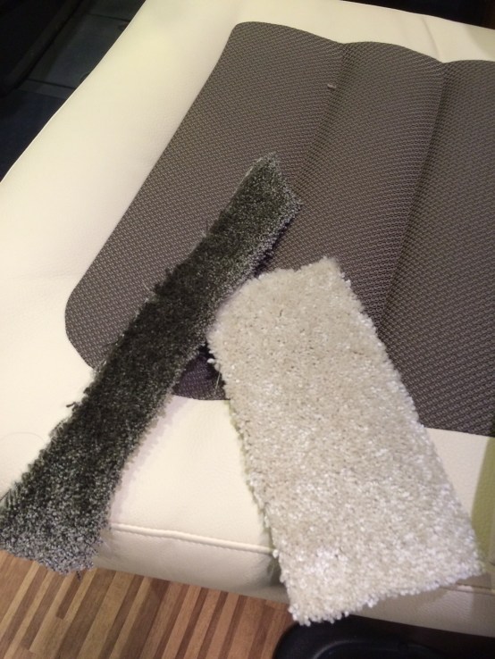 Bestämde mej för den bruna, (samma som vi hade i vår gamla husbil) men sedan gick vi förbi en Matrix med samma inredning som vår Sonic, som hade en ljus matta och då bestämde jag om mej! Det blir den ljusa – definitivt! Och ja, jag vet, jag kommer säker svära som bara den när någon går in med skitiga skor, spiller kaffe / vin eller Gud vet vad på mattan, men fy fan va snyggt det kommer bli!!! Ska köpa nått dundermedel jag läst om på husbilsklubben, som jag tänkt spraya på stolsklädseln. Tänker prova det på mattan oxå! Texelent textilskydd heter det!