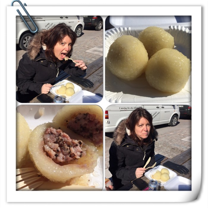Kroppkakorna var kanske inte riktigt i min smak…. Jag åt upp en! Det smakade julkorv, alltså det som var i mitten, det som var runt om smakade…. Hmmm inte så mycket. Men jag gjorde det! Jag provade!!!!! Det vågade inte Micke!!