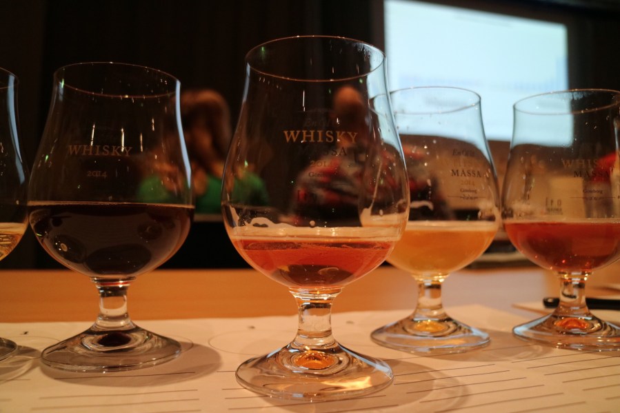 Sen var det dags att utforska mässan! Man fick två glas, ett för öl och ett för whisky och en liten påse runt halsen man kunde ha det glaset man inte ”använder”. Fiffigt!