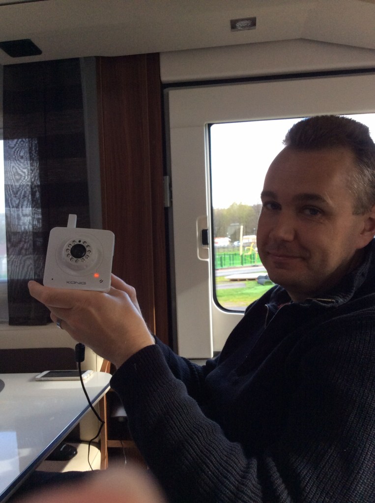 Men den ska vara i husbilen! Han lekte han med den hela dan igår 😀 (nästan). Den skickade mail (bilder) till hans telefon så fort det rörde sig i husbilen.