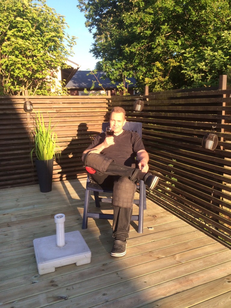 Tanken var att vi skulle inviga vår nya uteplats i kvällssolens sken med lite grill eller hämtpizza på fredag kväll, för vädret skulle bli kasst på lördag! Vi e trötta på att sitta inne i husbilen och se på film, surfa och allt annat man gör i regnigt väder. Nä, vi hade verkligen bestämt oss! Vi skulle bli hemma!