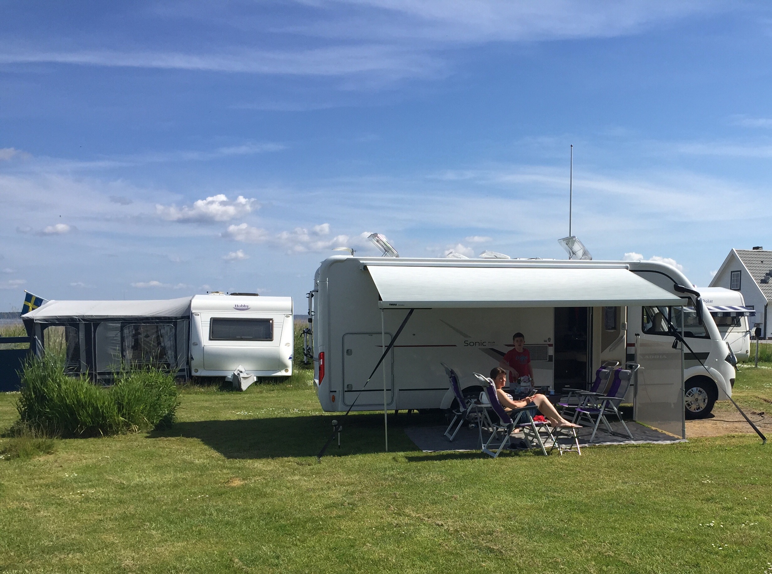 Rullade in på Norjeboke camping strax efter kl 19. Efter ca 15 minuter var grillen tänd och ”uteplatsen” klar att intas i solen