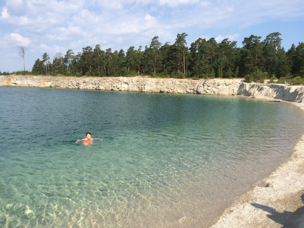 Väl över på Gotland körde vi mot den blå Lagunen, häftigt ställe! Ett gammalt kalkbrott med helt turkost vatten. Ett perfekt badställen för Matilda eftersom hon inte badar om det finns fiskar 😄 svårare om man är vid havet😉