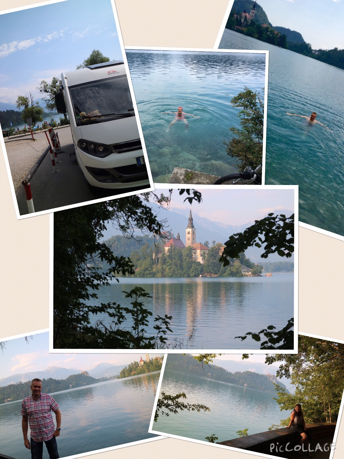 Igår körde vi redan tidigt på förmiddagen det långa passet från en camping i Bled till en annan! En bättre! Betydligt bättre! Men hjälpte det? Not för man fick inte checka in förrän kl 12 och det var inte säkert det fanns någon plats 😖 Micke gick till slut upp till receptionen och ställde sig där för att tråka ut dem 😃 det hjälpte för halv tolv fick vi en plats 👍
