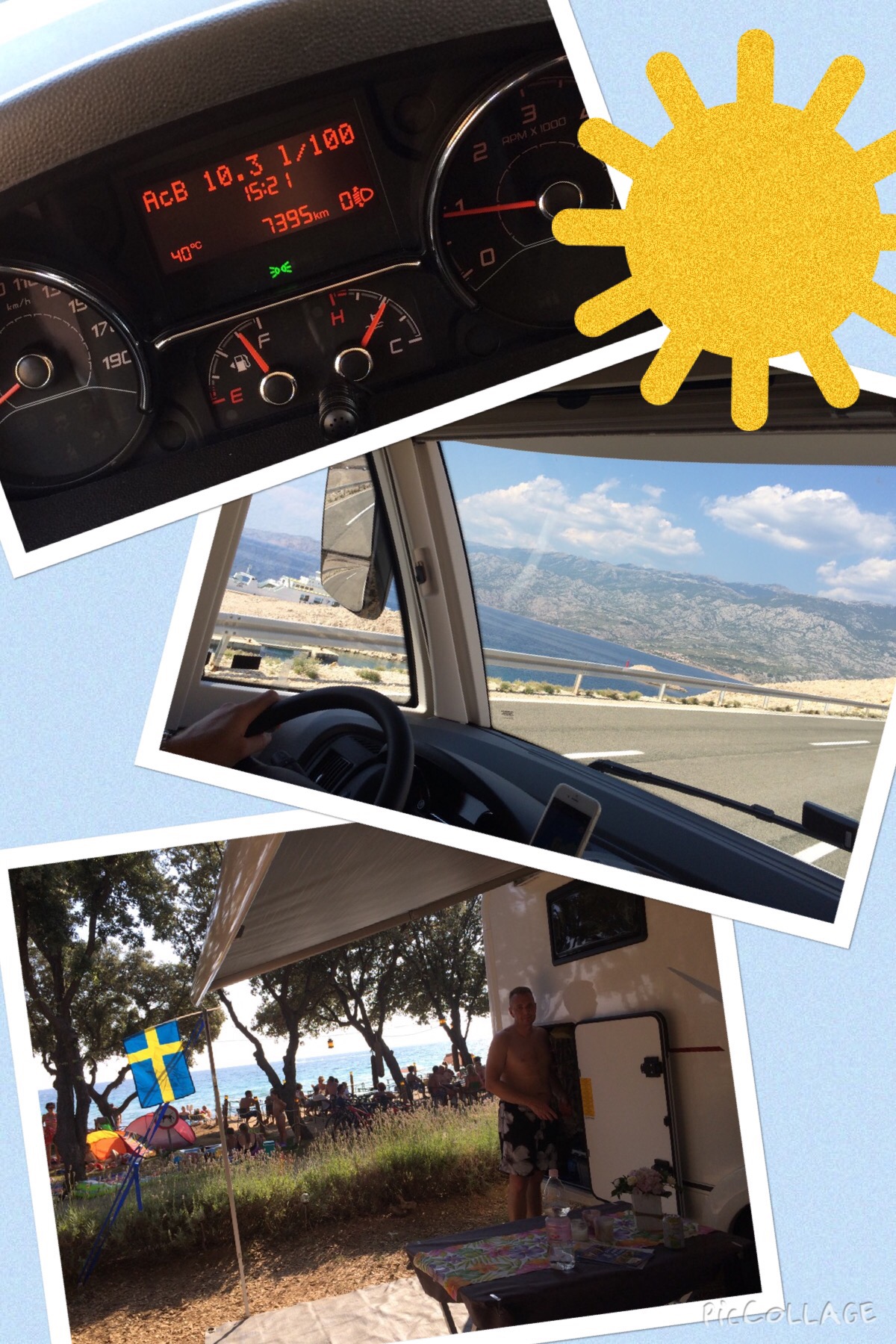 Imorse packade vi ihop tidigt för att bege oss mot Senj (Kroatien) det hade vi sett på Husbilksklubben – fejsbook att där var en häftig camping. Men när vi kom dit, var det inte riktigt det vi var ute efter,kan man säga…. Eh… Så vi fortsatte mot Pag och höll tummarna för att vår plats, som vi bokat från i morgon och 6 nätter framöver, möjligen var ledig även i natt. Vi hade tur!!! Det var den 😃 så här sitter vi nu, klockan 20:00 och här är 30,6 grader och tittar ut över havet – varmt så in i …. men Camping Strasko, det lilla vi än sett av den – det gillar vi!!! 😎