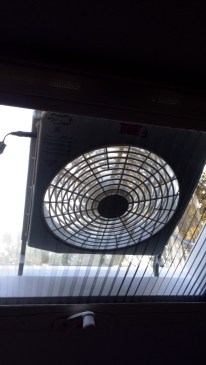 Här är 36 grader, bara så ni vet. Hade inte Micke köpt denna lilla manick före vi åkt, hade vi nog inte överlevt natten. Det är en Fiamma fläkt man sätter i takluckan.👍🏻