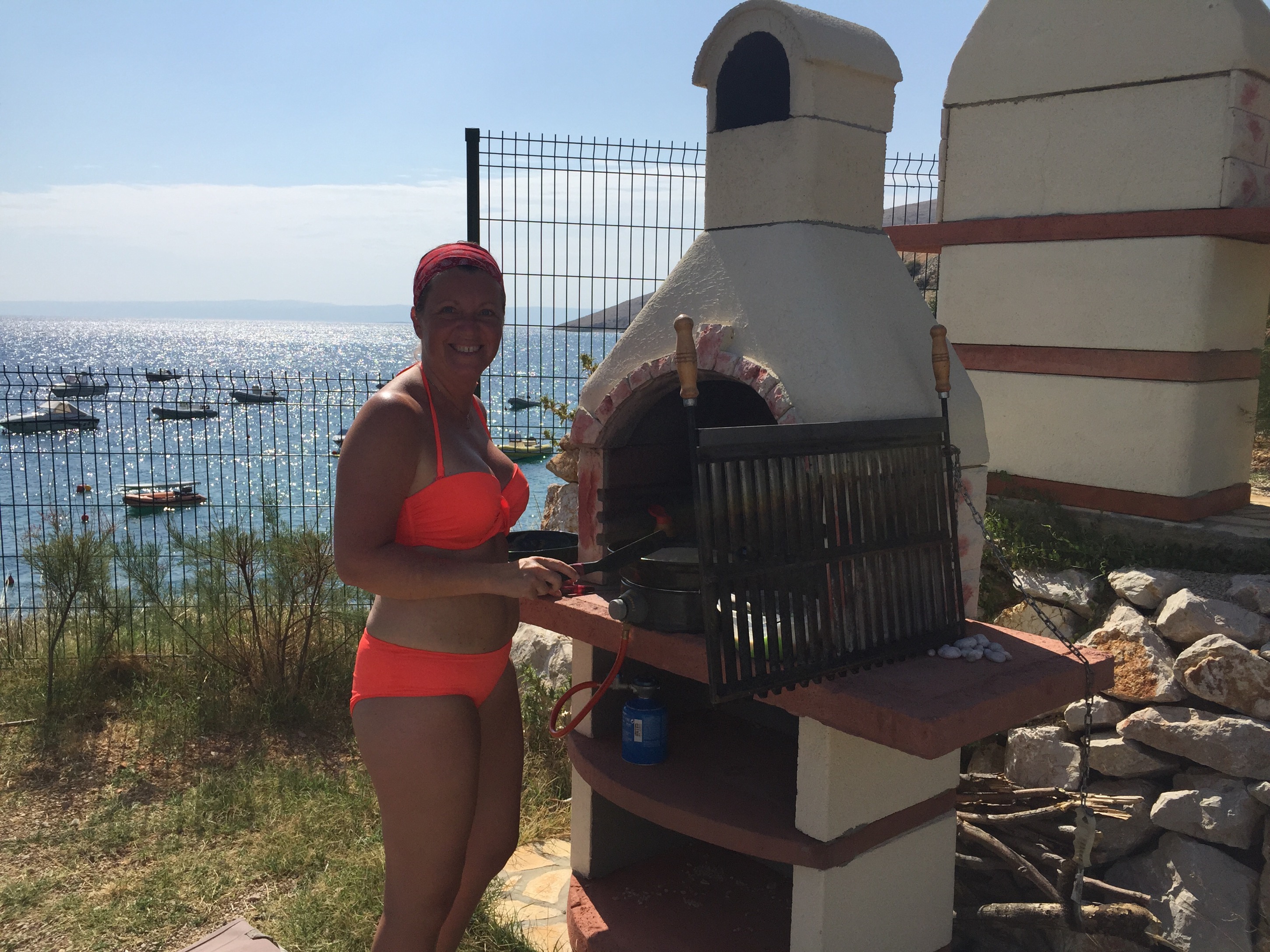 Som väl var fanns platsen bara ledig en natt. Det kändes inte bra imorse, men det känns fantastiskt bra just nu!!!! Vi kunde fått bytt plats (till en sämre) men vi valde att köra vidare mot Camping Skrila, 7 km söderut på Krk. Det visade sig vara en riktig höjdare!!!! Här står vi nu: