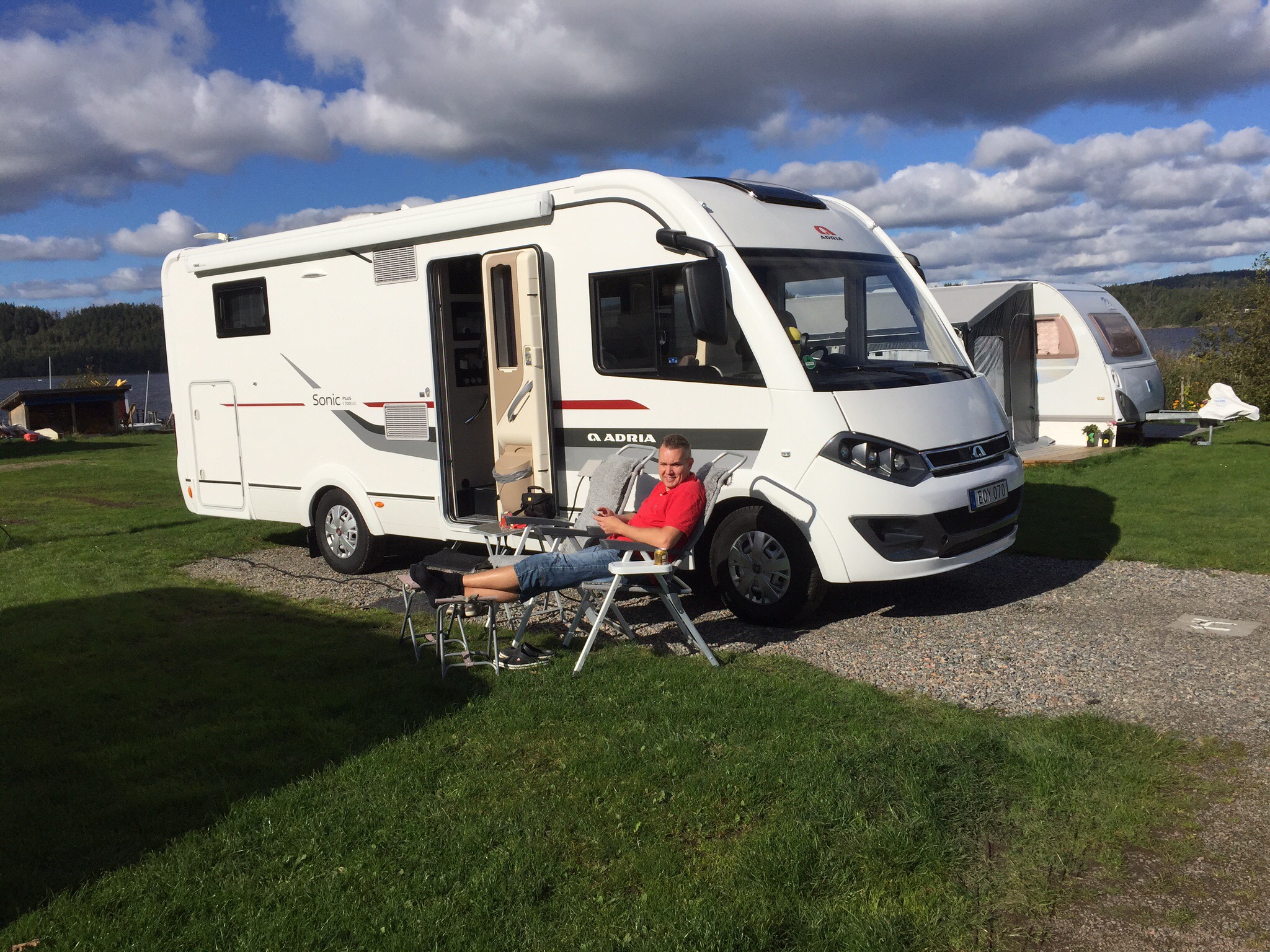 Väl tillbaka vid husbilen körde vi ner till sjön Mjörn för att ev ställa oss där istället, men där var dels skugga = ingen solcellsladdning, och dels sunkigt = risk att köra fast, så vi körde tillbaka igen. Väl på plats kom en p-vakt fram till oss och sa vänligt men bestämt till oss att här kunde vi inte stå! Bussparkering 😁 Ops! 3 andra husbilar bakom oss hade fått 600kr i böter vardera… Vilken tur vi hade! Vi beslutade oss att åka till campingen i stället för vi ville sitta ute och lapa sol! Hade ju givetvis kunnat stå kvar på parkeringen men ställt oss på ”vanliga” p-platser, men hur kul hade det varit?! Ta ut stolar på parkeringsplats, eh… not!!!