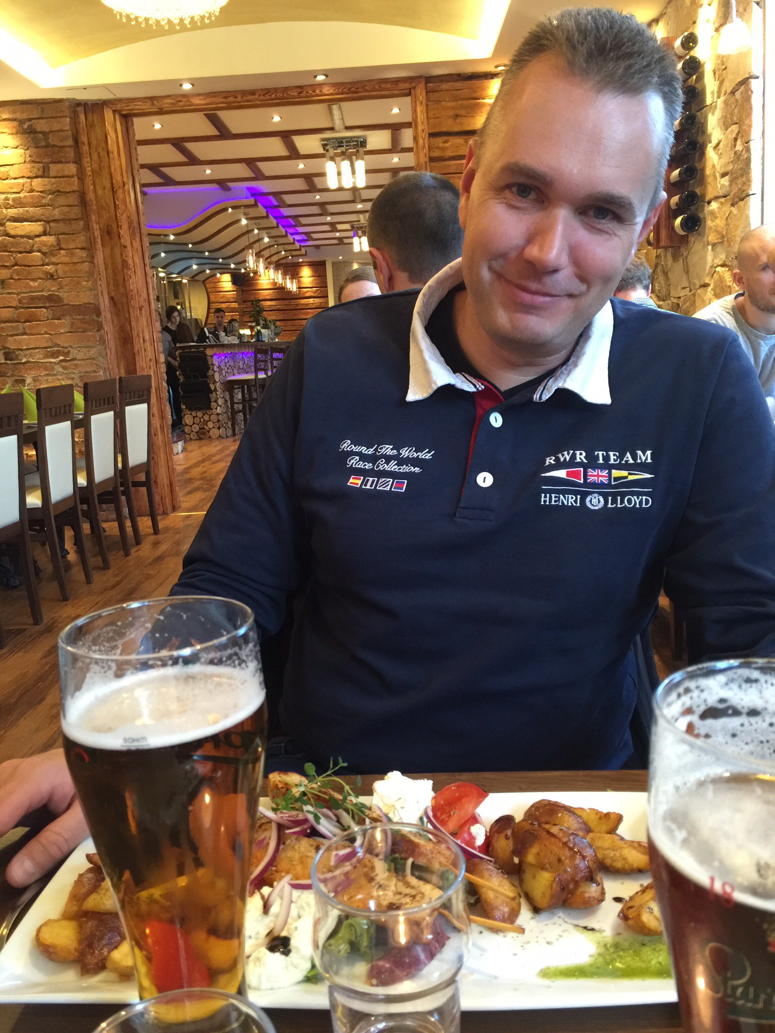 Vilken mysig restaurang – och snygg!! Jag tog havsaborren och risotto – fruktansvärt gott!! Micke valde kyckling souvlaki, men han var inte helt nöjd 😕. Den var inte helt genomstekt 😁 och lite smaklös, men man kan ju inte ”ha tur jämt”..