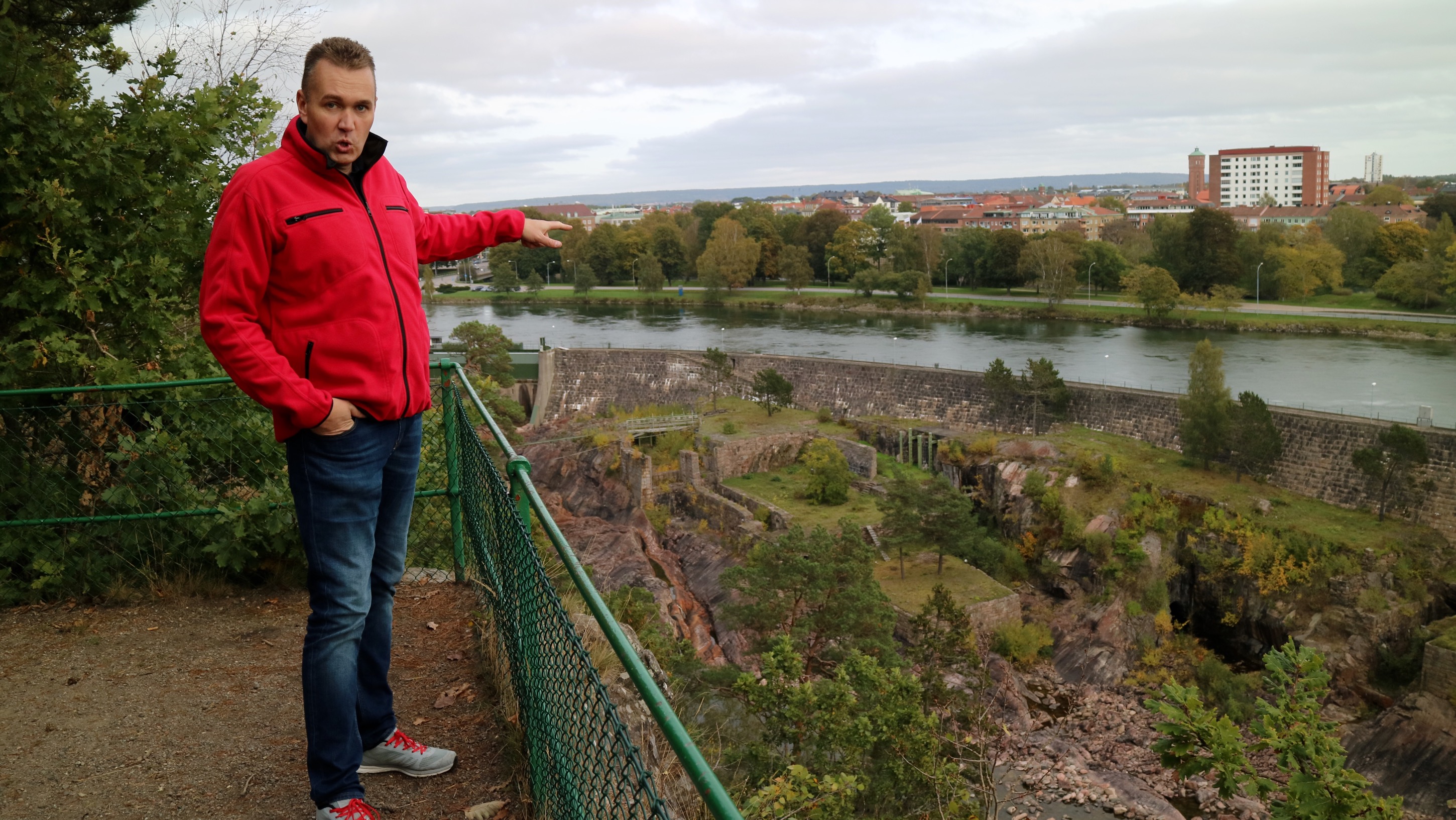 Här berättar Mikael att här nere har det legat kvarnar och sågar på 1800-talet, före de i början av 1900-talet byggde ett kraftverk. Han kan sin historia han👍🏻