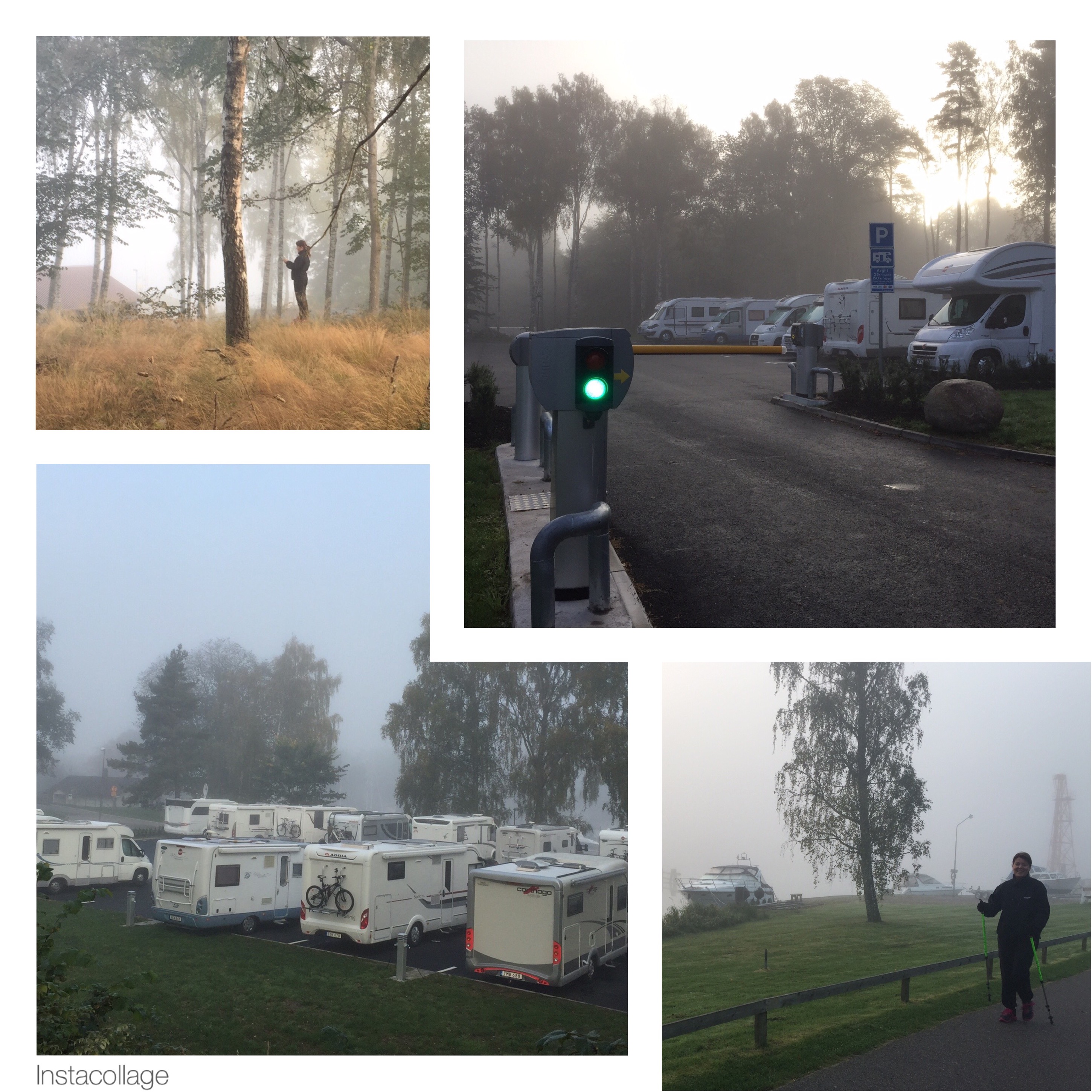Vi startade dagen med en promenad. Dimman låg tjock längs älven. Provade mina nya Bungypump-stavar, lär nog få träningsvärk imorgon! De var effektiva vill jag lova!