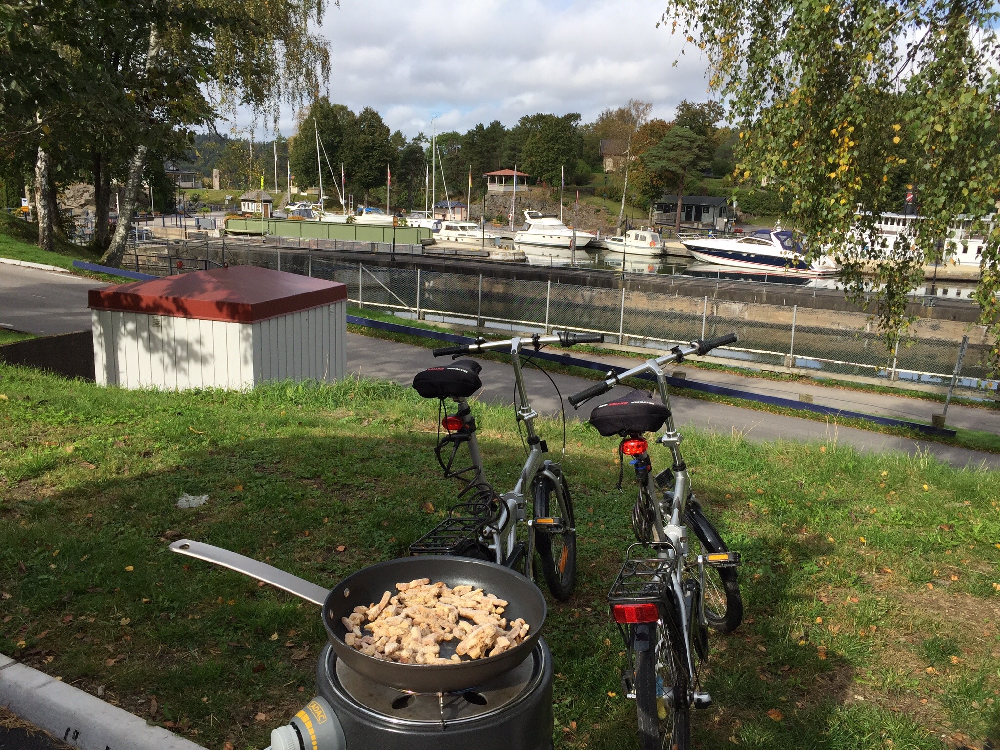 Efter den korta visiten i centrum var det dags för lite lunch vid husbilen, otroligt att kunna sitta ute och äta i oktober!!🍁🍂🍄 Man kan ha sämre utsikt!😄