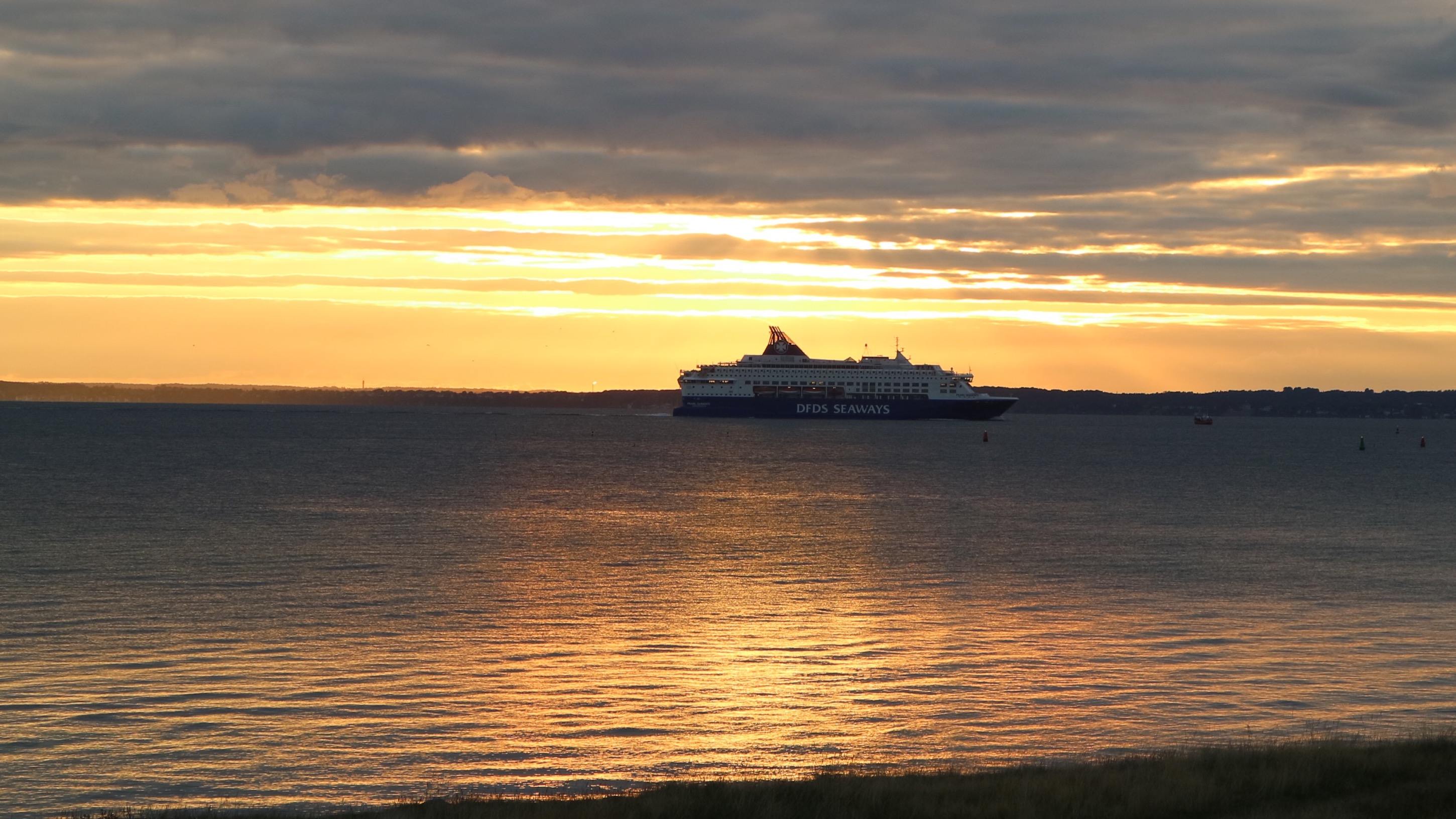 Solnedgången igår var ju helt fantastisk! Plötsligt fick jag syn på en båt, så jag hastade ut (i foppatofflor) och sprang upp på vallen
