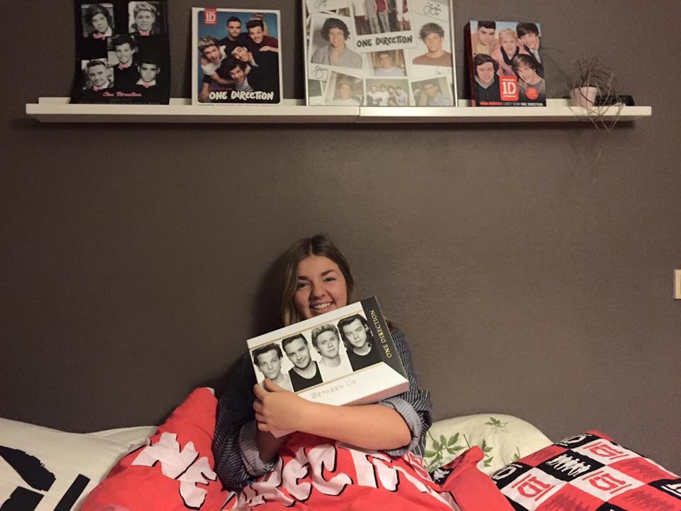 Man kan få en hint om vilket Boy-band hon gillar bäst……