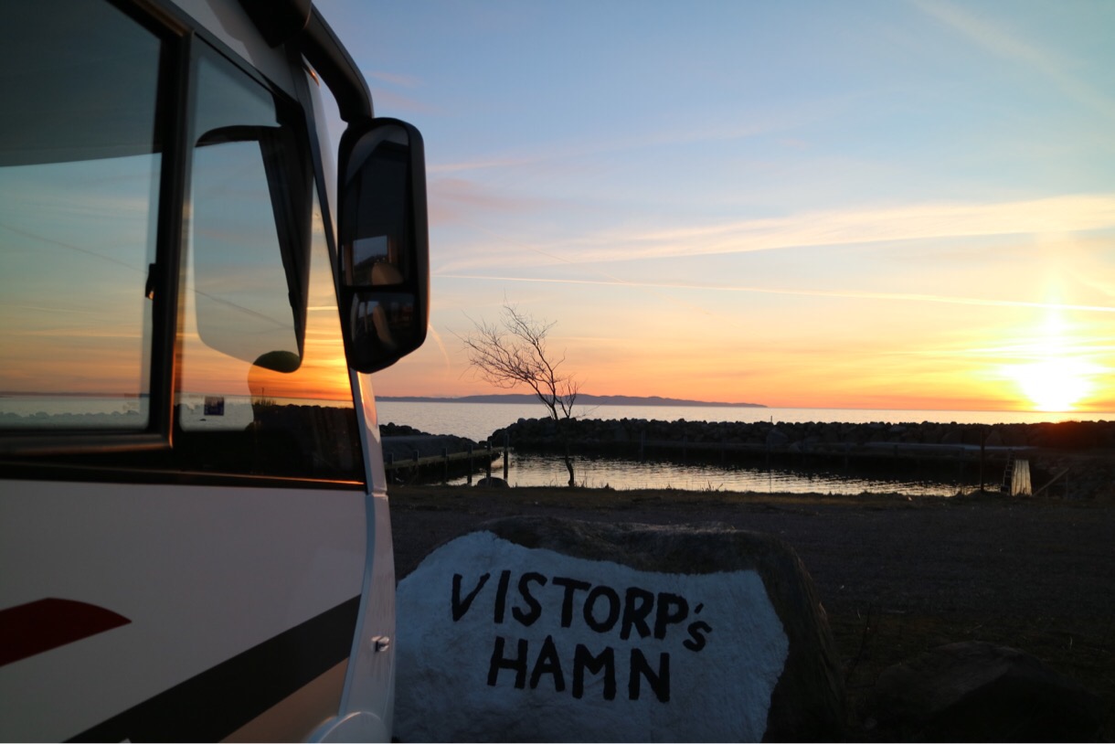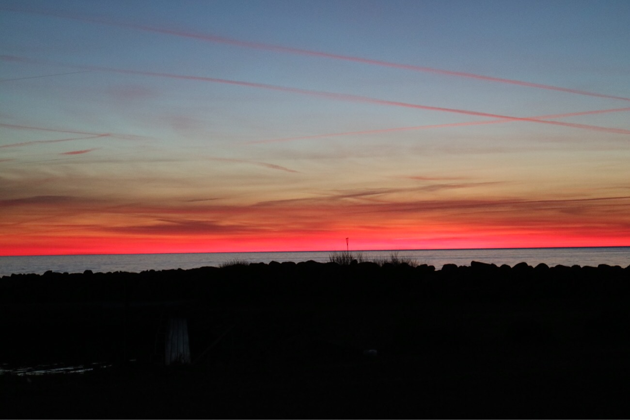 Vi fick en otroligt vacker solnedgång! Det var perfekt drönarväder, men här är det förbjudet att flyga med den! För nära Ängelholms flygplats 😕