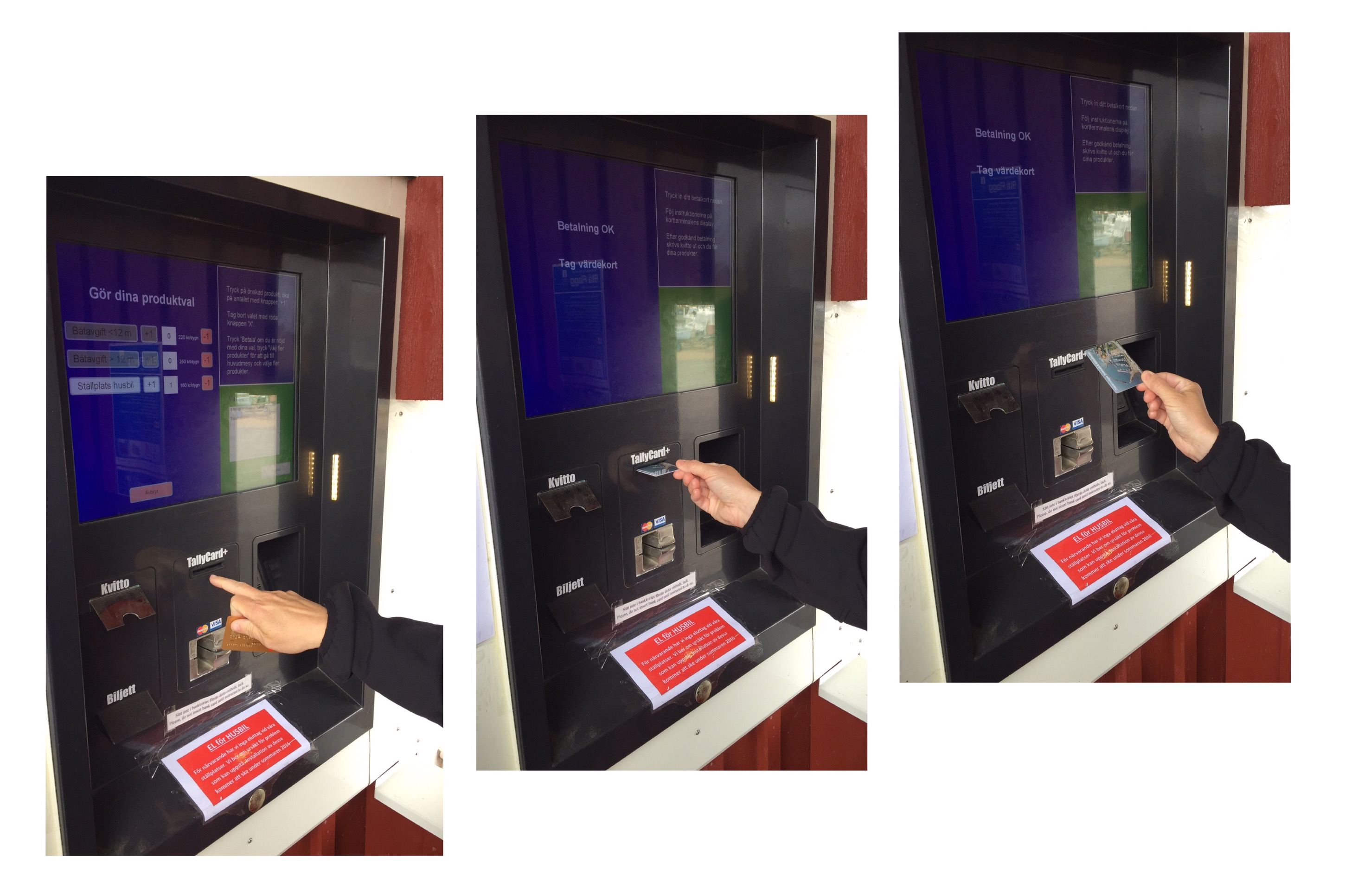 När man valt antal nätter och betalt, ploppade det ut ett litet kort ur automaten (Tallycard) som går till toalett/dusch. Detta går oxå att ladda med pengar till duschen, och är även betalsätt för elen.