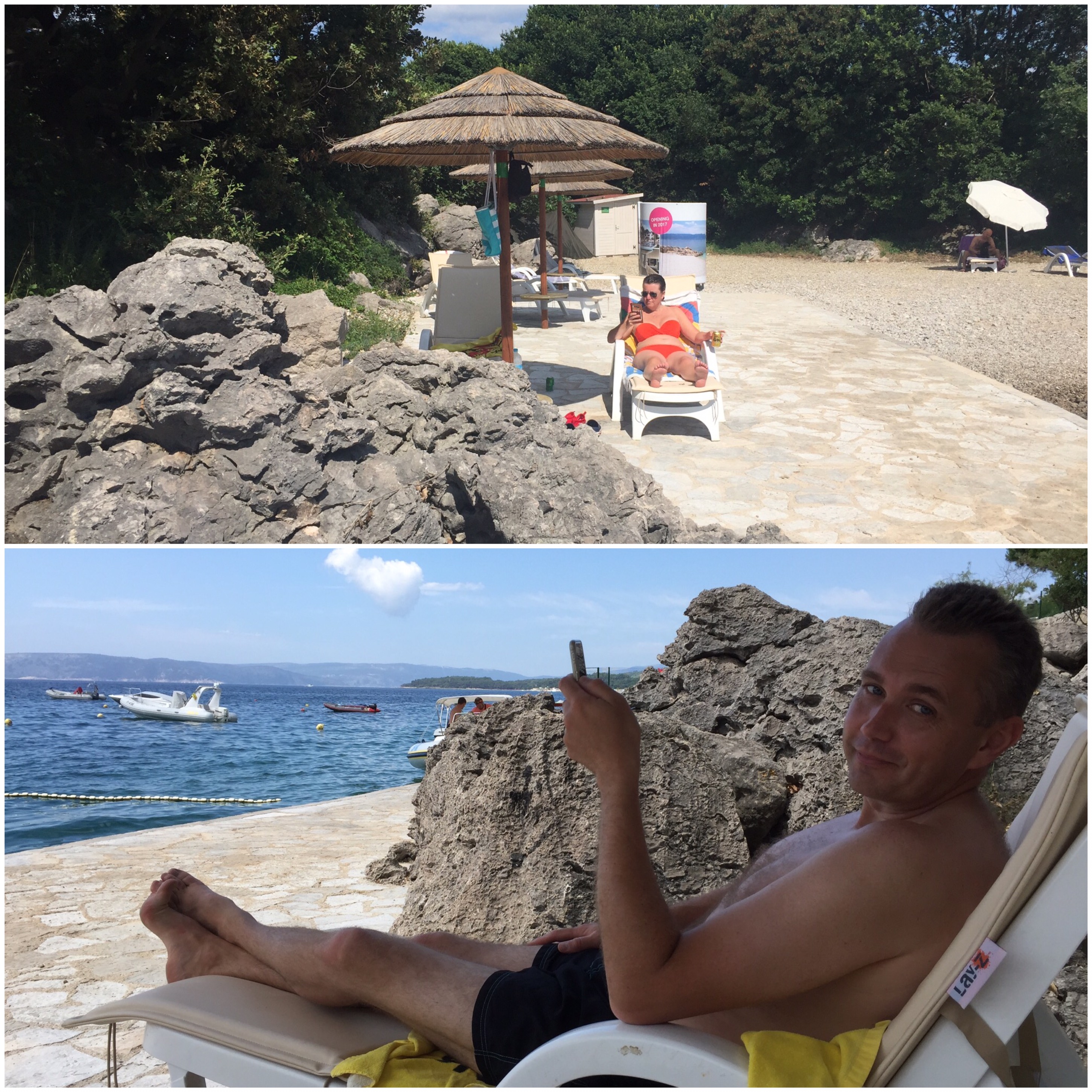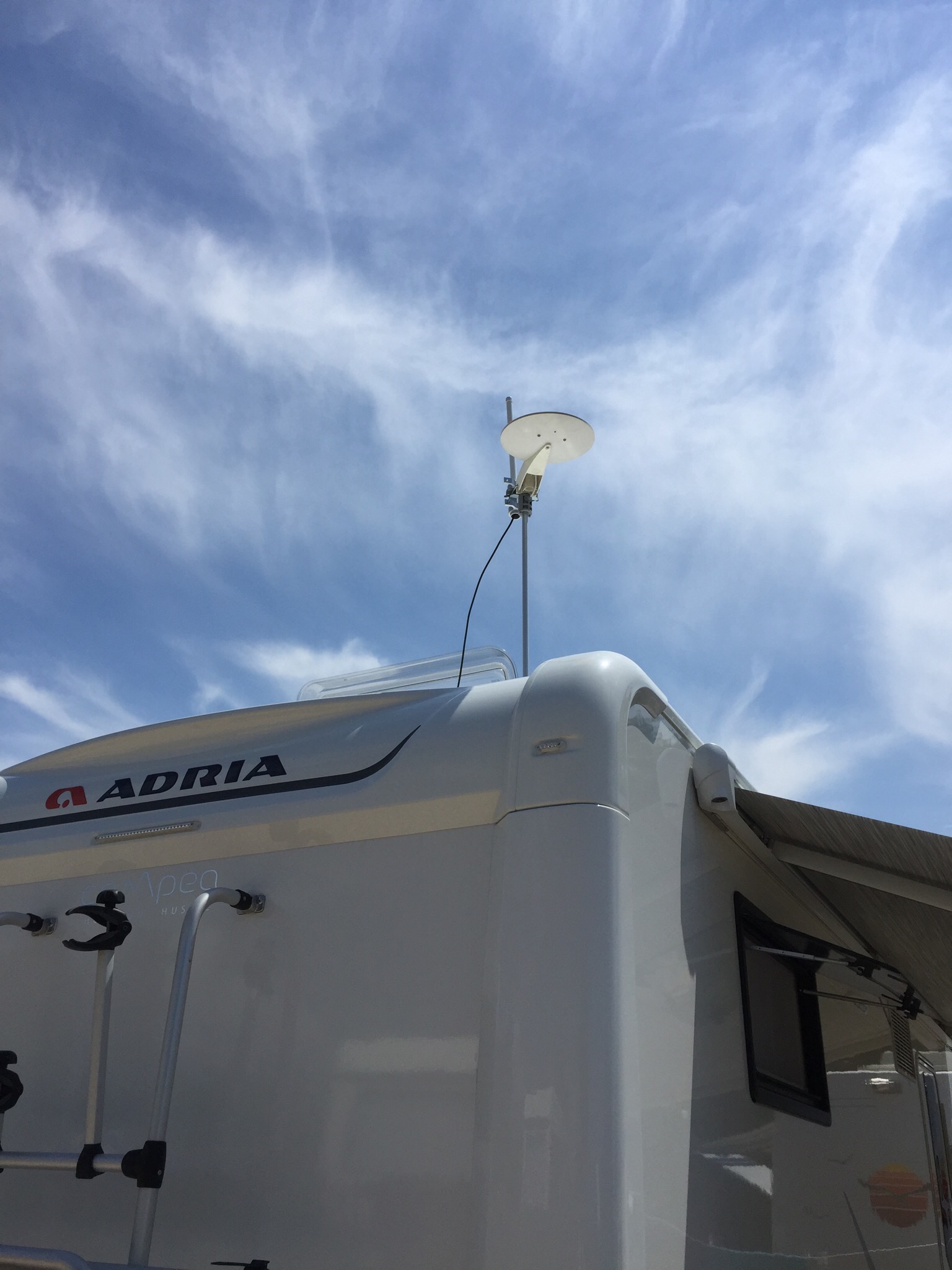 Vi fick tag i mobilt kontantkort i går på en INA mack, precis innan vi svängde ner till Kamp Krk. Micke ”kopplade in det” på två röda, och satt dess utom upp en antenn så det skulle räcka ner till stranden 😂 snyggt?! High tech 🤓