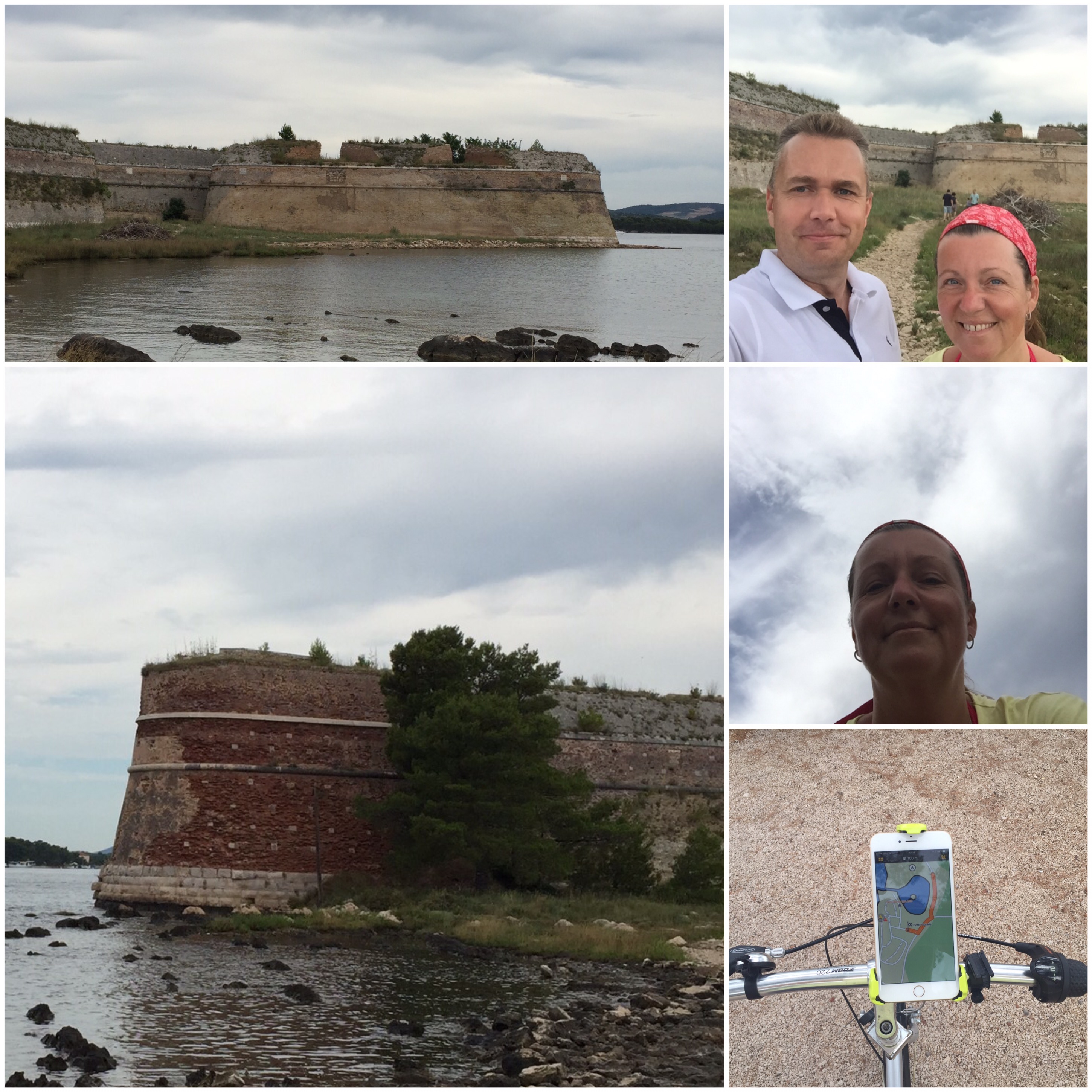 Vi ställde in kursen mot Tvrđava Sv. Nikole, ett fort som ligger i kanalen in mot Sibenik. Lite snopna blev vi när vi insåg att vi inte kunde komma upp på det😳. Det gick folk där uppe, men de hade kommit dit med båt från andra sidan…. Ja ja det var bara att cykla hem igen 🙄 Nästa gång ska vi cykla ”åt andra hållet”, där ska tydligen ligga en liten större by 😊
