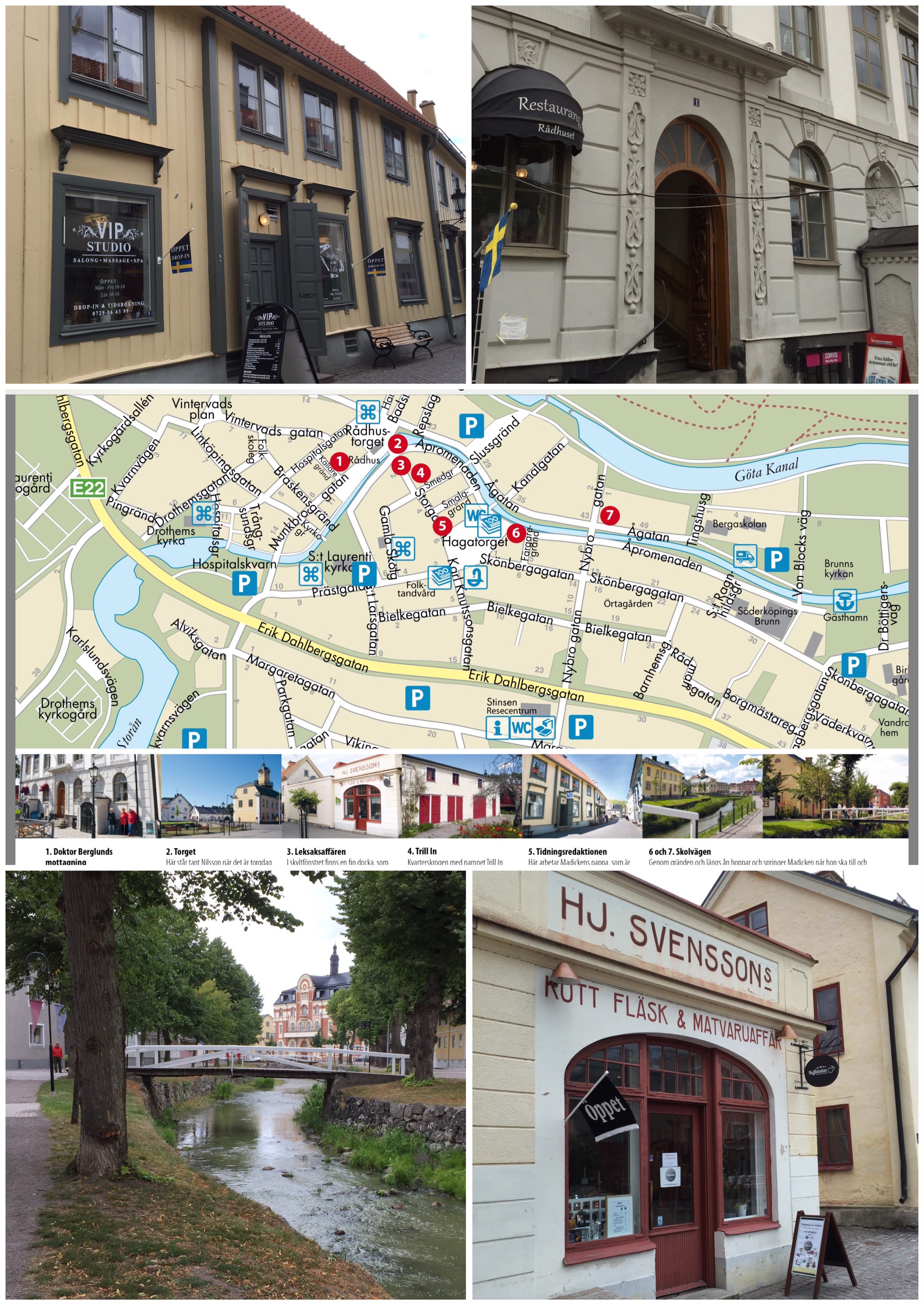 Det är i alla fall där vi hamnat – i Söderköping! En riktigt, riktigt mysig liten stad! Här spelade de in delar av Madicken fick jag lära mig idag!! Jag laddade ner en karta över inspelningsplatserna – här skulle det gås i Madickens fotspår!!!