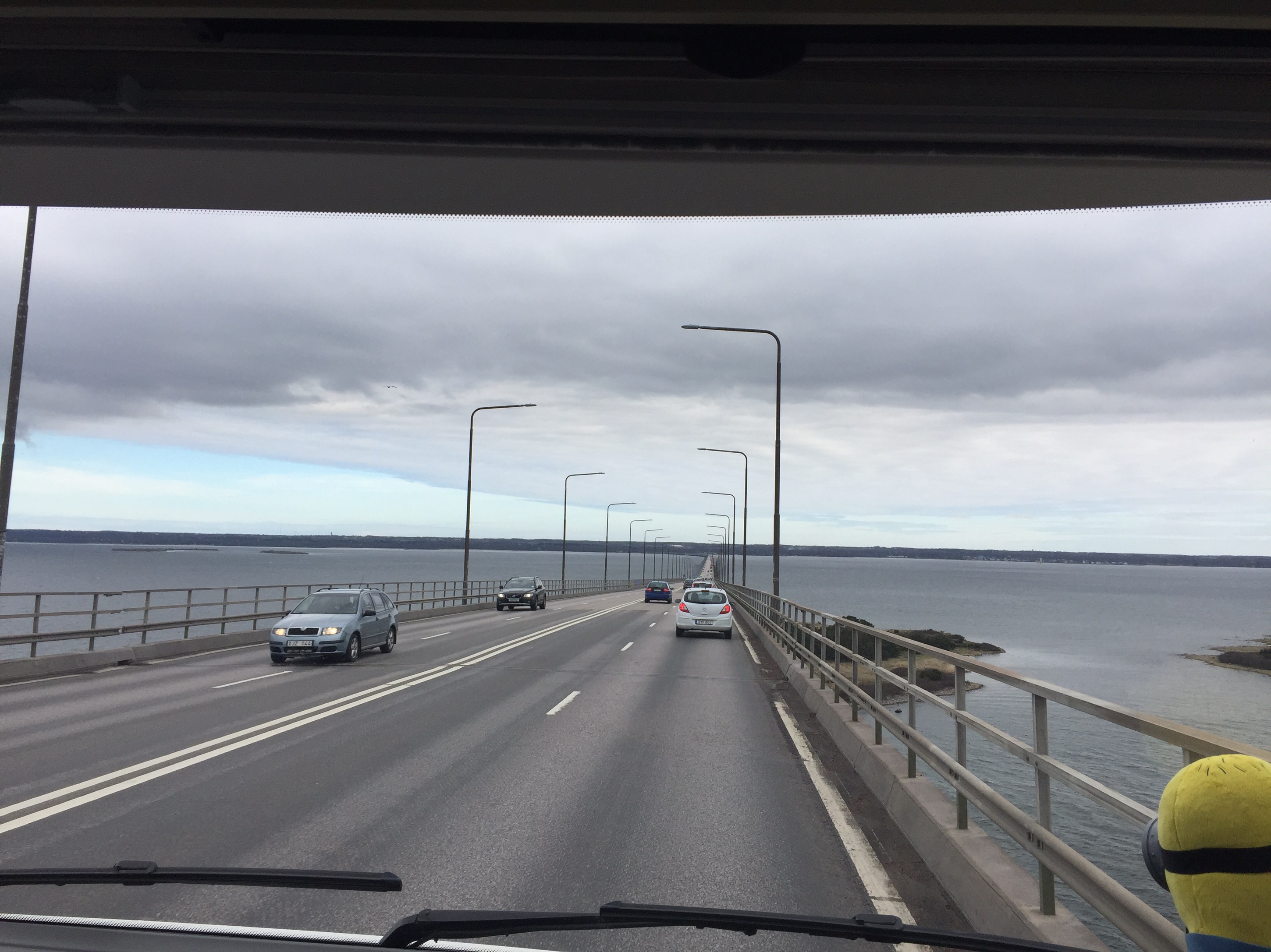 Igår tog vi husbilen till jobbet, slutade vid lunch för en gångs skull!, och styrde skutan tvärs genom landet. Sverige är ett rätt brett land….. med skog, skog, skog, skog och utan motorväg…. trååååååååkigt! Men till slut såg vi ljuset i tunneln – Ölandsbron!