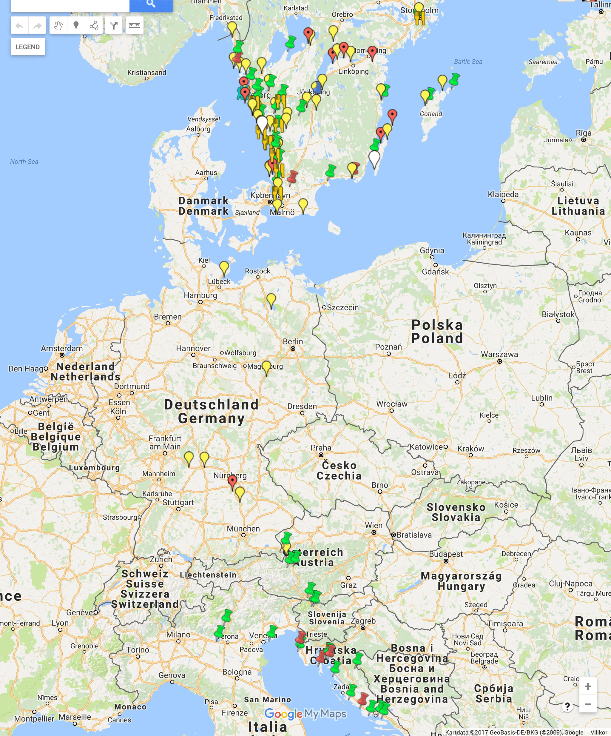 En röd liten plupp blev det ( = 4+ eller mer). klickar man på kartan och sedan på plupparna hittar man lite bilder, länkar och vad vi tycker är bra och dåligt med platserna