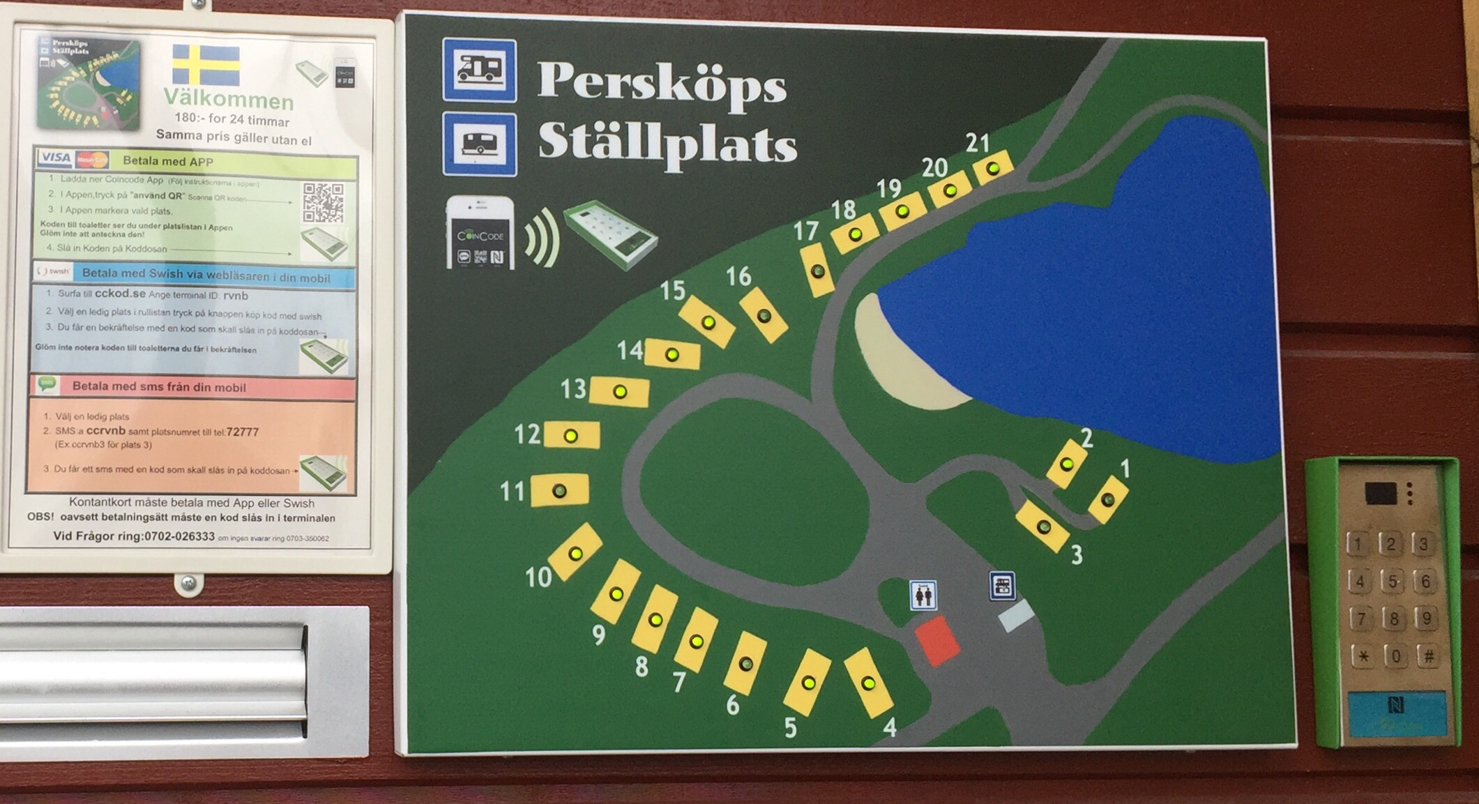 De har ett väldigt fiffigt betalsätt här, lampan tänds när man betalt och knappat in koden. Man kan betala med både kort, swish och sms – mycket fiffigt 👍🏻