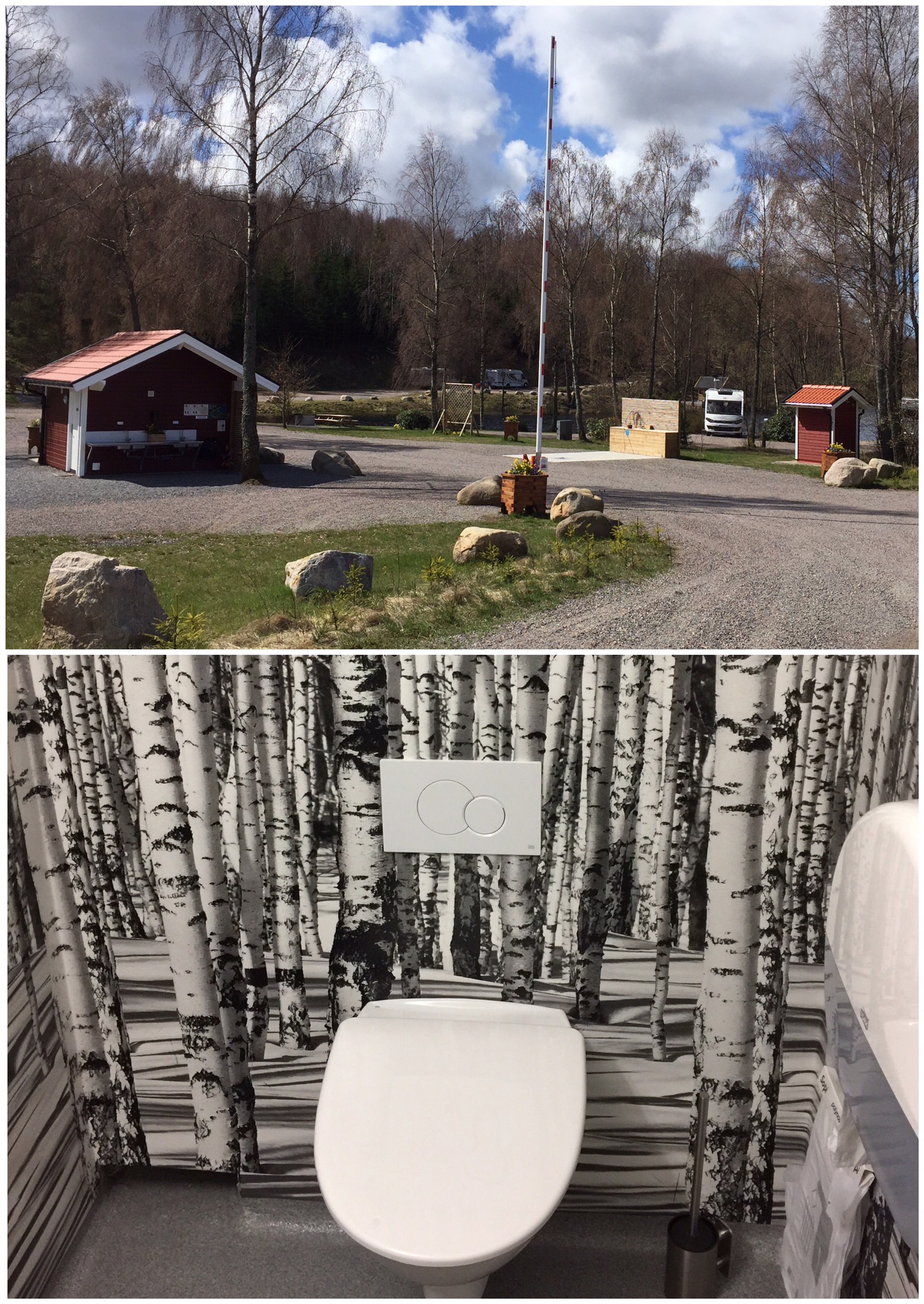 Ställplatsen har alla ”faciliteter”, toa, dusch, disk, tömning och vattenpåfyllning. Toaletterna och duscharna är verkligen superfina!!
