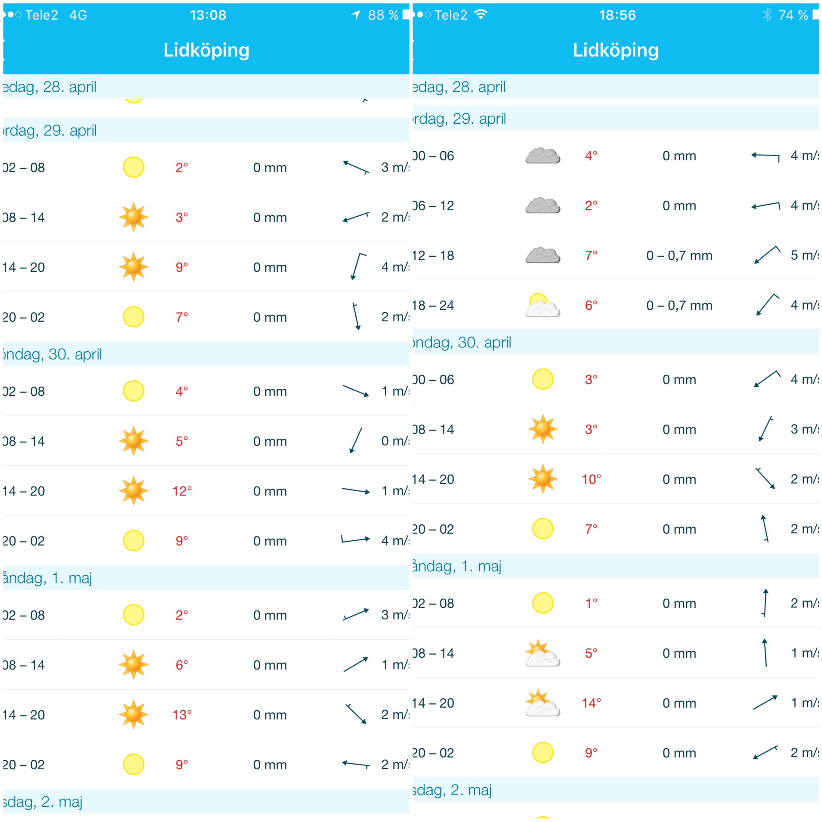 Hur många gånger kan / får man ändra sig som metrolog?? Jag bara undrar! Så här såg det ut i måndags jämfört med nyss: