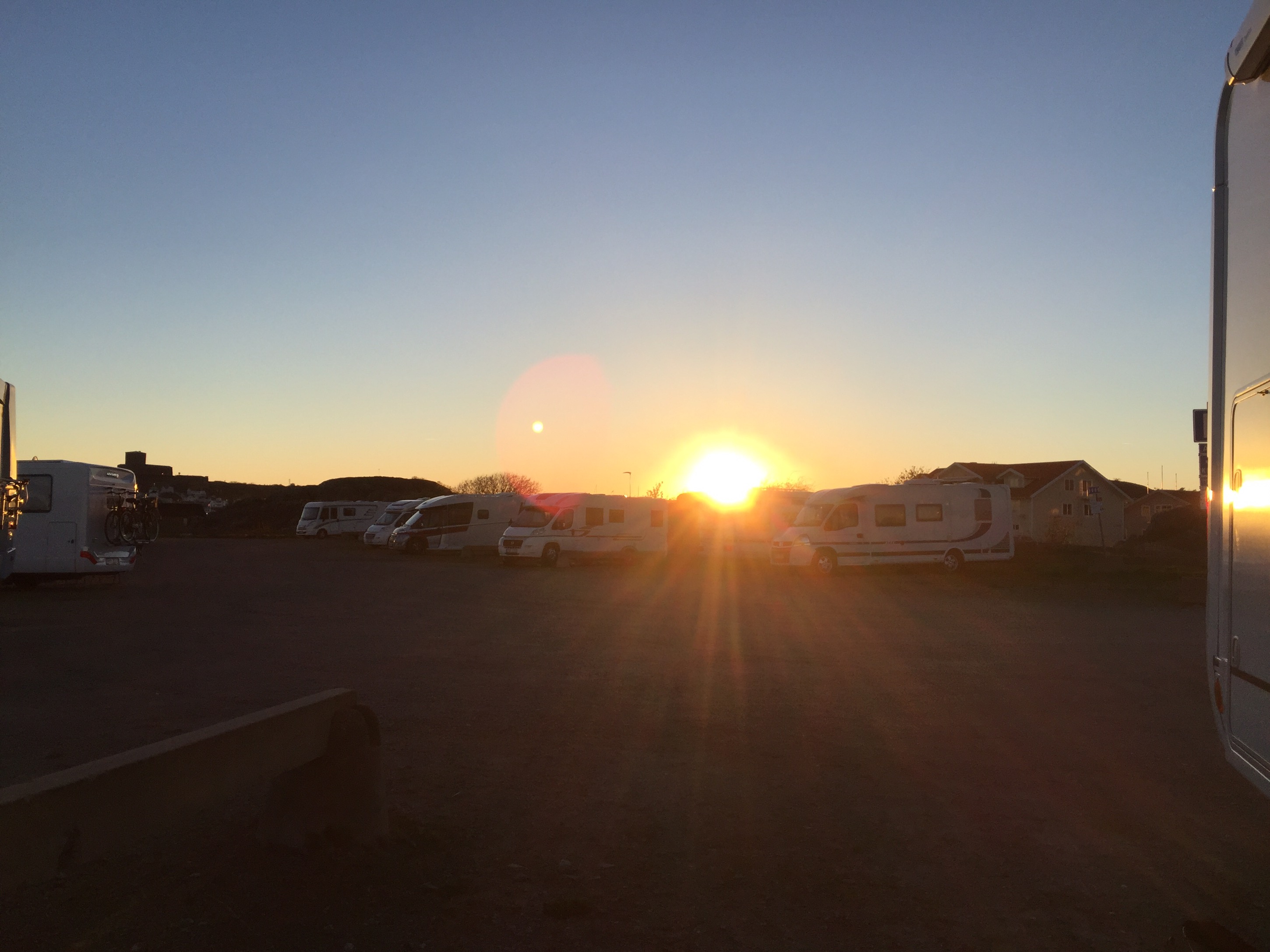 I morse vaknade vi av att det knäppte i husbilen – det betyder sol ☺️, tog en bild från takluckan