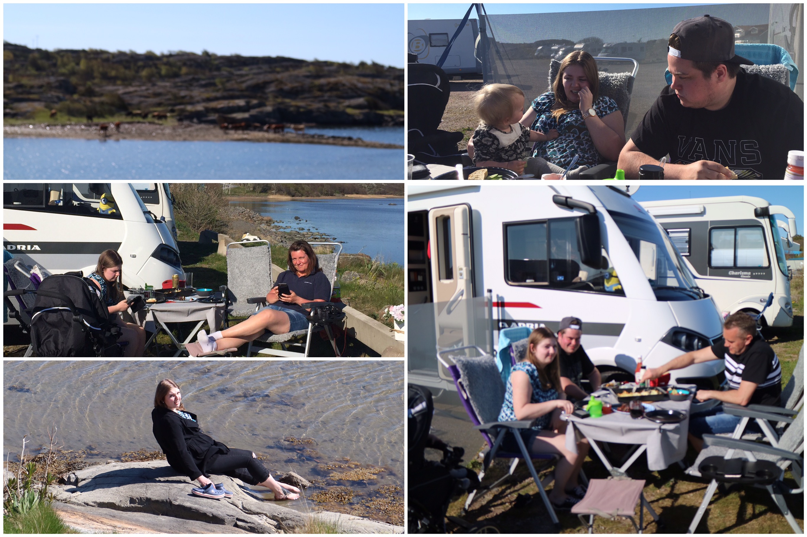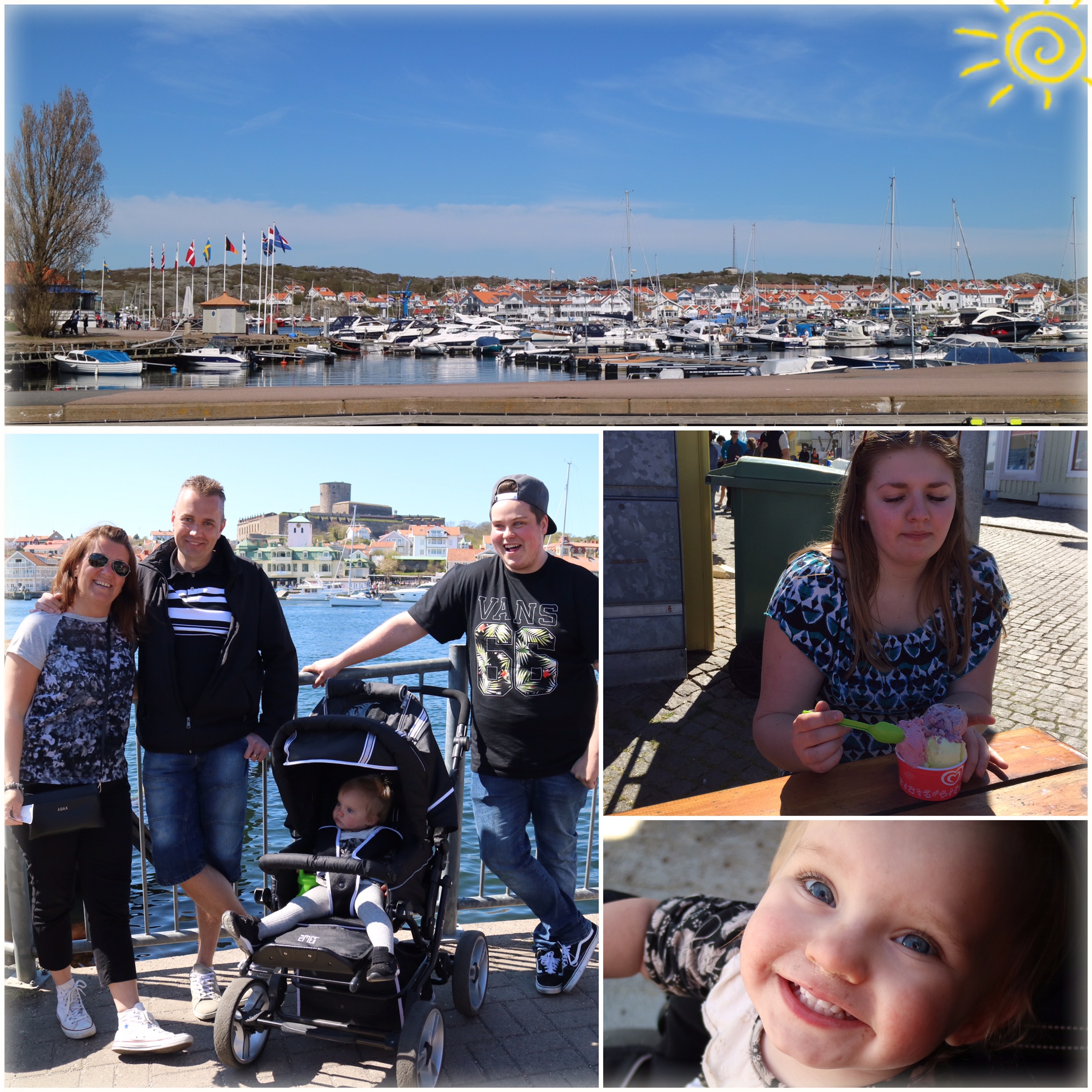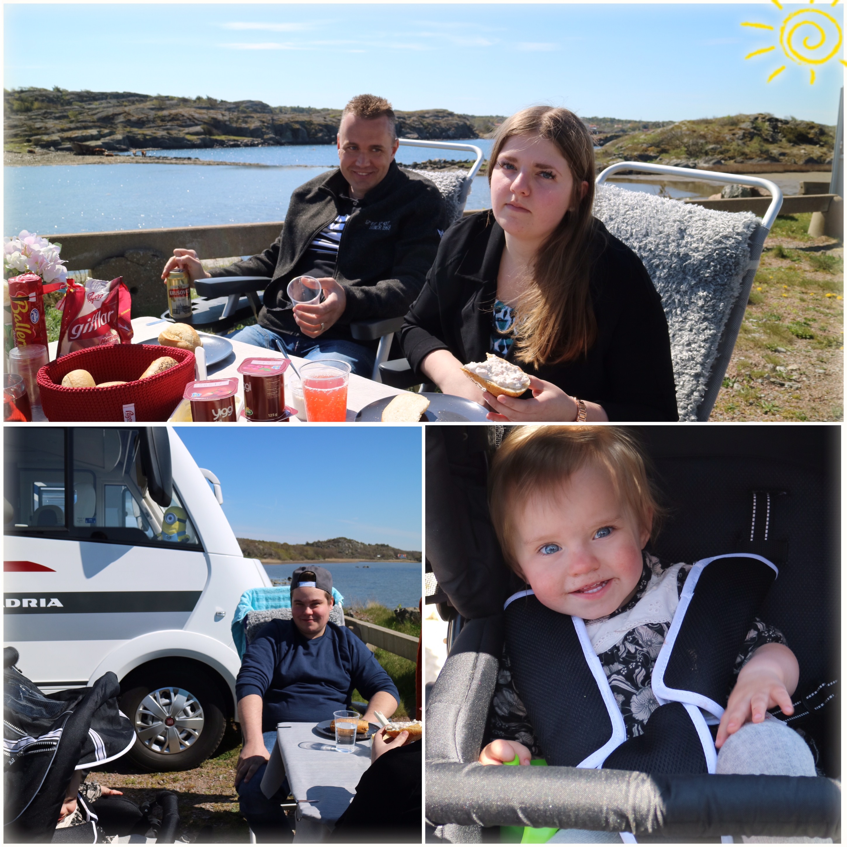 Vid lunchtid i går kom Matilda, hennes sambo David och hans lilla dotter Alice på besök vid husbilen. Vädret kunde verkligen inte varit bättre! Vi tog en liten fika vid husbilen innan vi gick ner till färjan, som skulle ta oss över till Marstrandsön