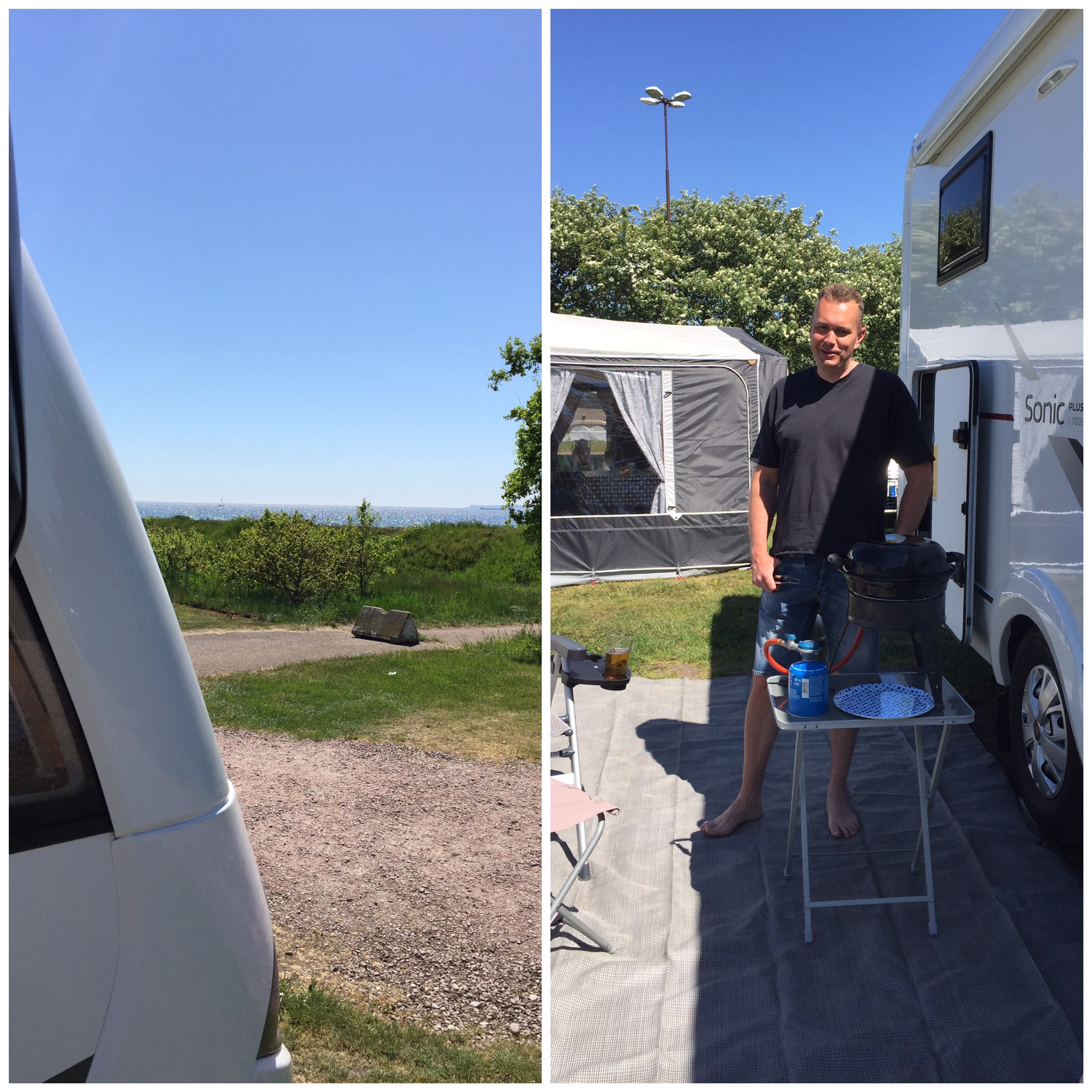 Nu har vi flyttat oss igen, inte så långt bort 😂 Till Råå Vallar camping för vi ska på fest ikväll till ett par kompisar 😊. Tur vi bokade plats, för campingen är helt full, annars hade vi nog i o f s fått stå på deras garageuppfart 😜