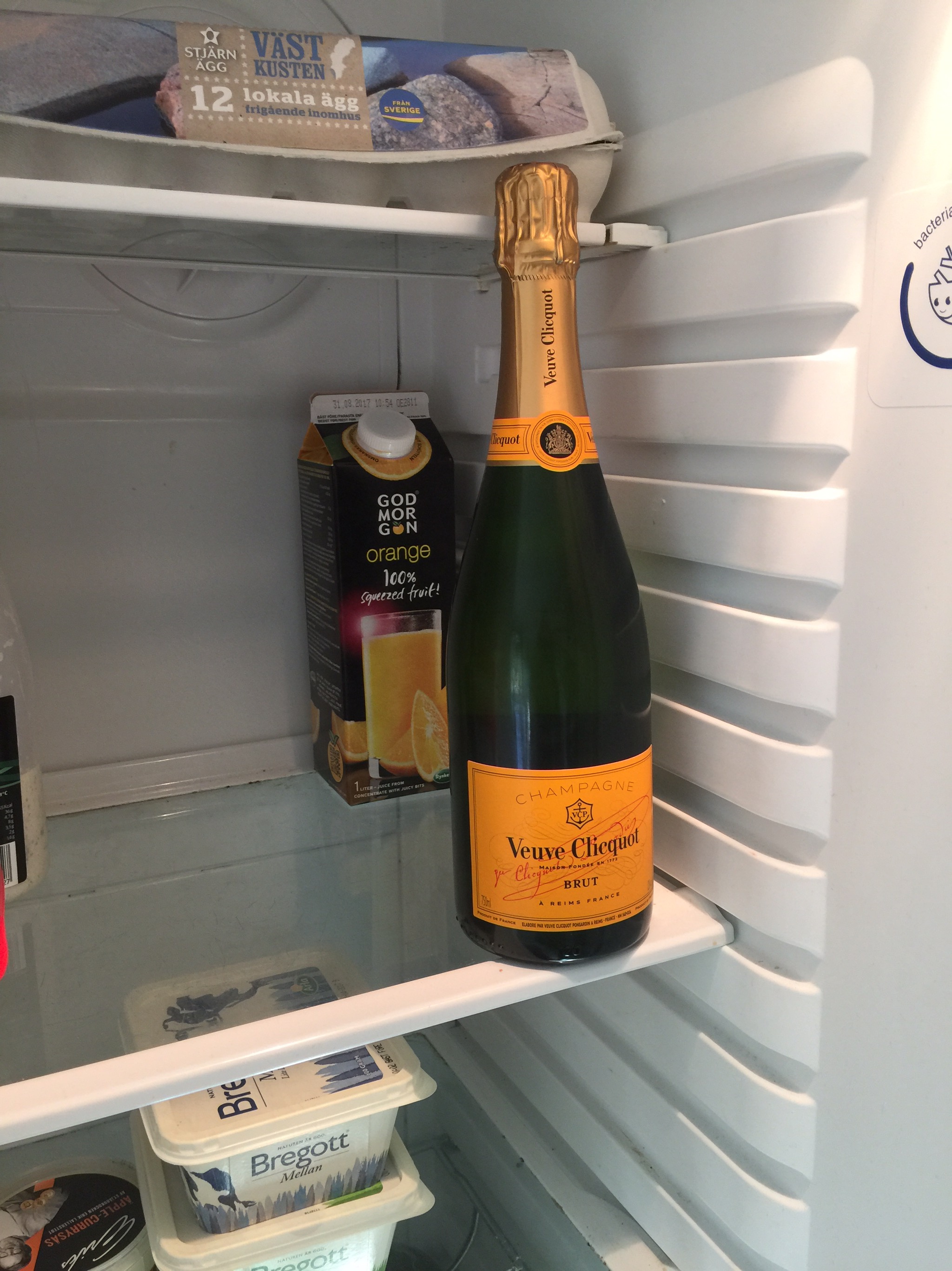 Givetsvis står bubblet nu på kylning, i det annars snart tomma kylskåpet