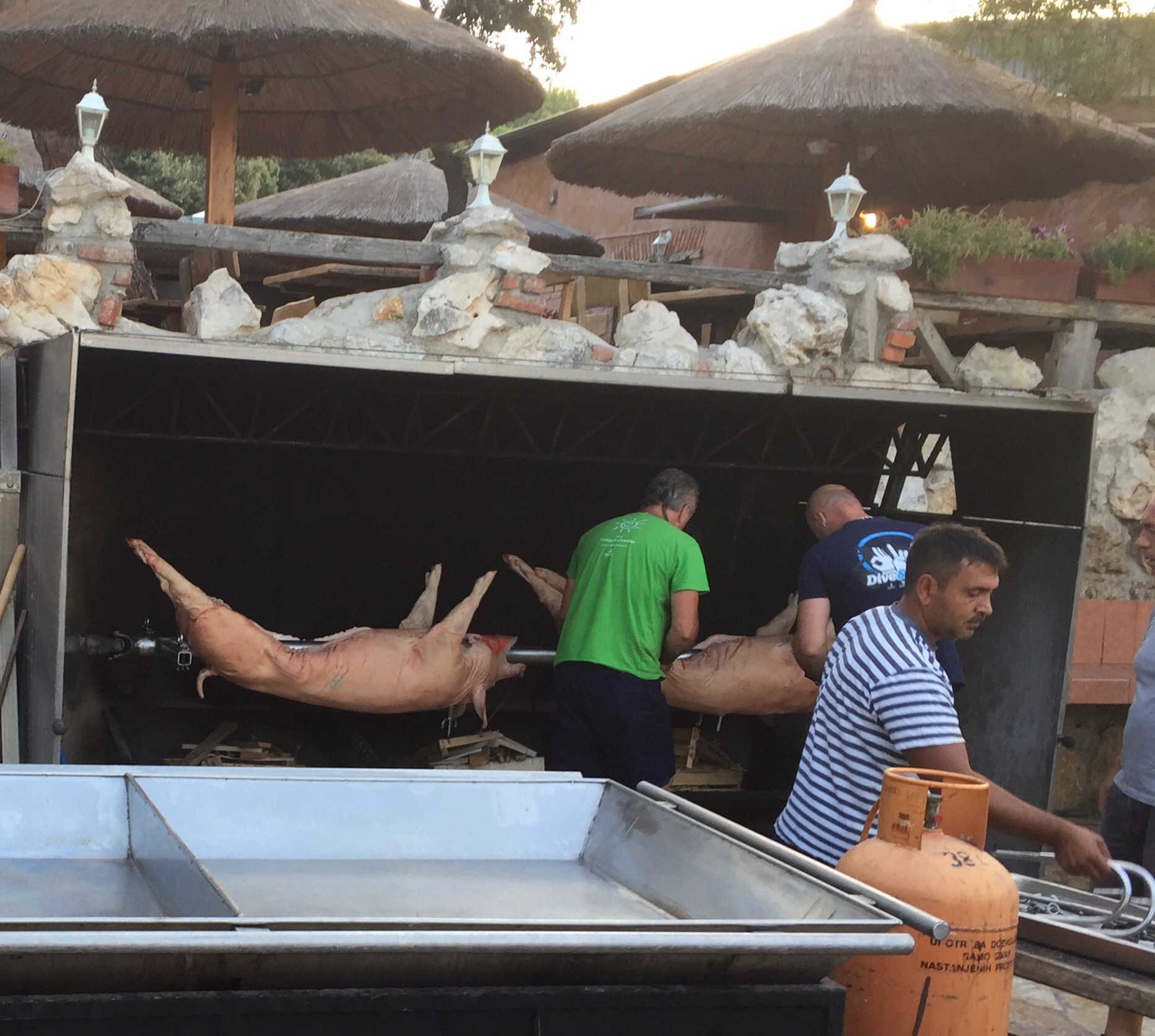 Däremot höll de på att rigga upp grisarna på grillen – liiiiite läskigt!
