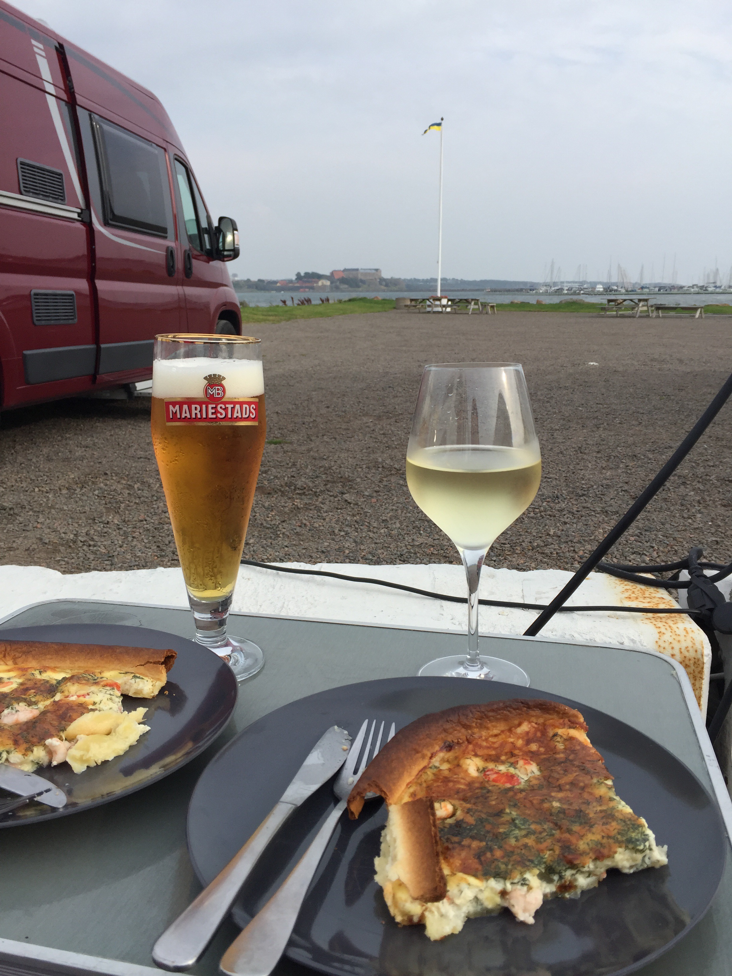 Funderar på en sak ibland….. Man har ett trevligt hus hemma, uterum, uteplats, lummig (väl överväxt just nu 😂) trädgård, ändå kryper man in i ett hus på hjul på 10-12 kvadratmeter. Kör ett par mil, för att ställa sig på en grusparkeringsplats tillsammans med ett 20-30-tal likasinnade. Tar ut campingstolar och bord, tar ett glas ”komma-fram-öl/vin”, lite mat, kanske en skaldjuspaj som man swishar i hop i det minimala köket, sedan sätter man sig och tittar ut över havet. Och man bara älskar det?! Hur förklarar man det för de som inte förstår bättre??? 😳