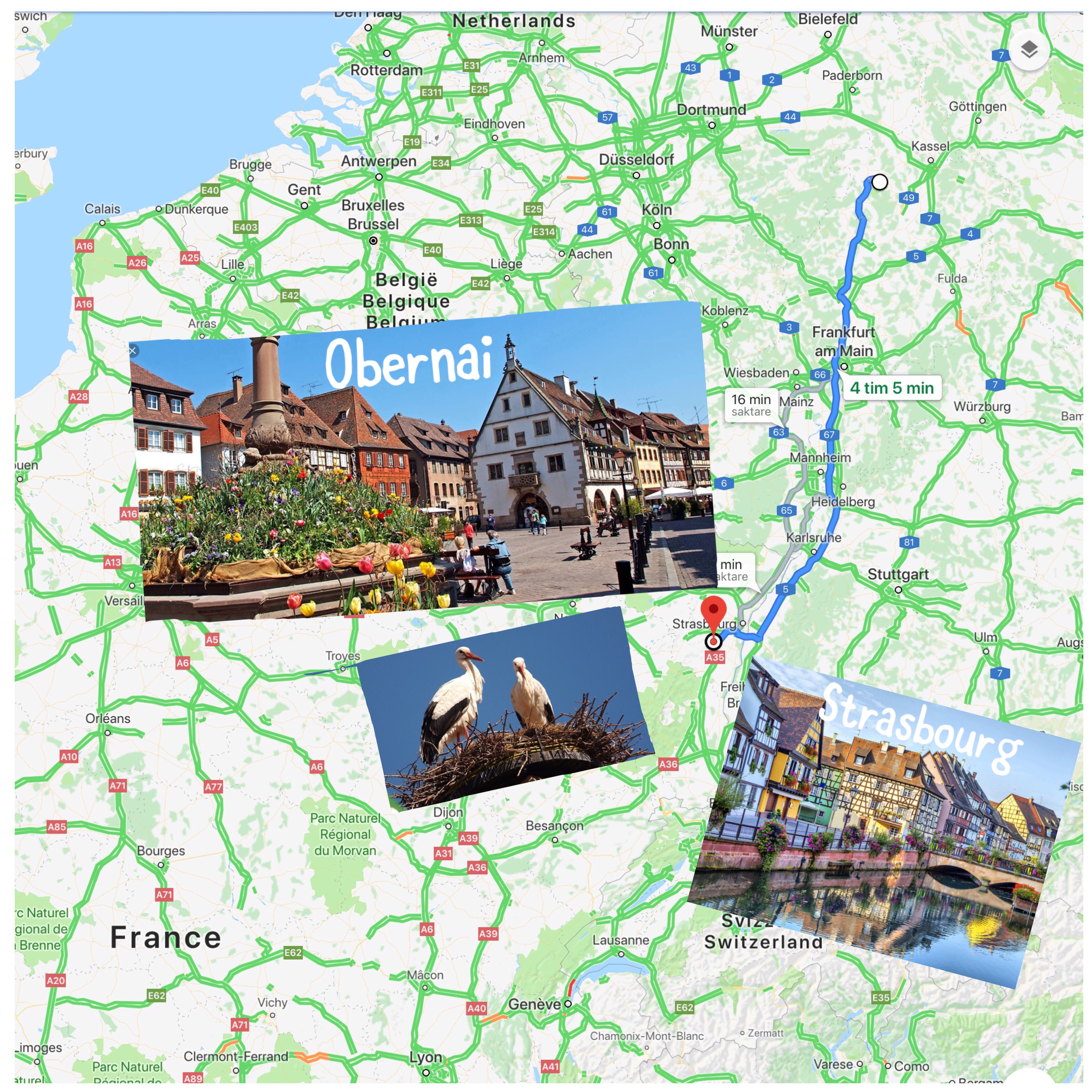Tänkt stanna ett par dagar i Obernai, och ta en dagstur till Strasbourg. Här ska finnas lite vingårdar har jag läst 😍