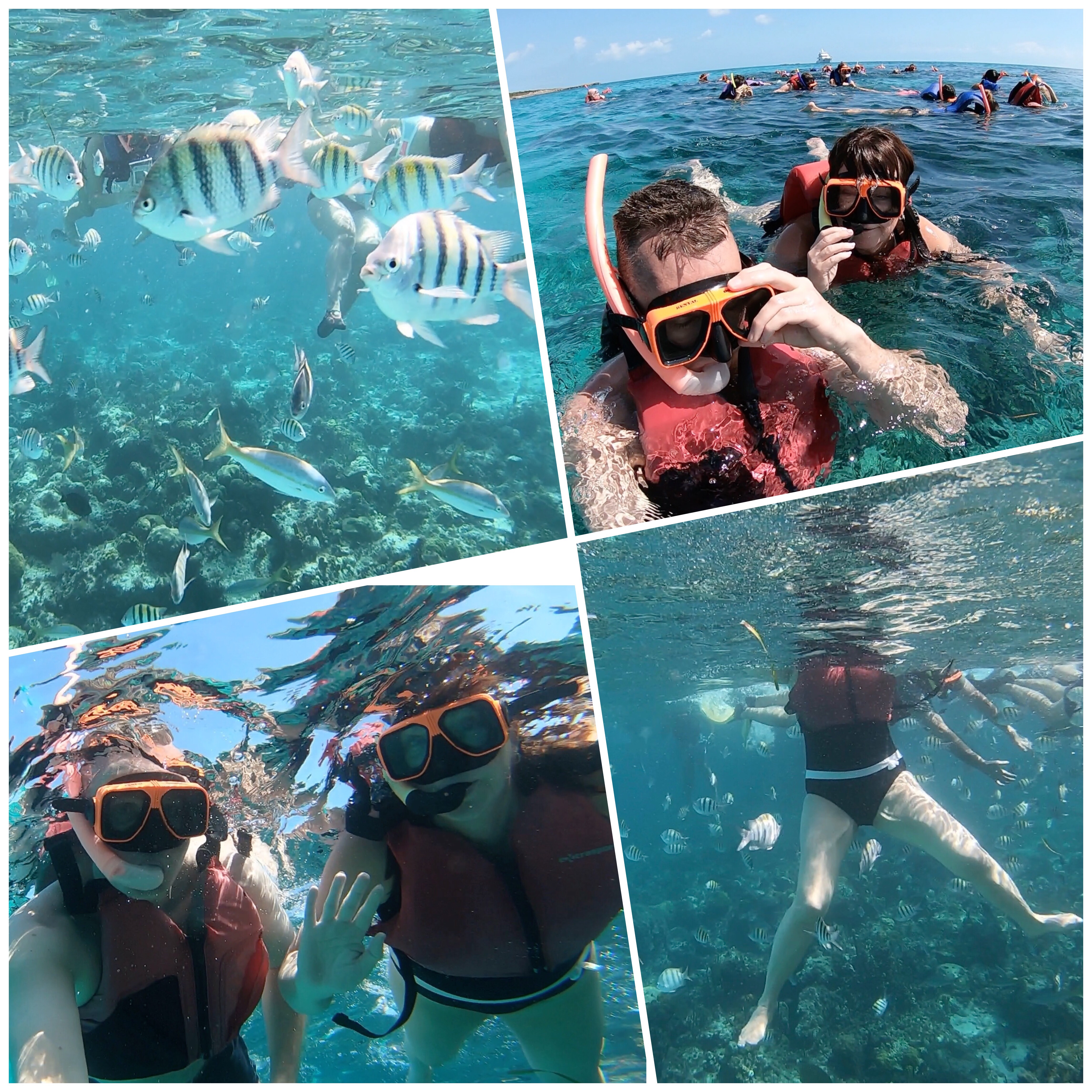 Väl framme vid revet fick vi låna snorklar och flytvästar – sen plumsade vi i 🤗