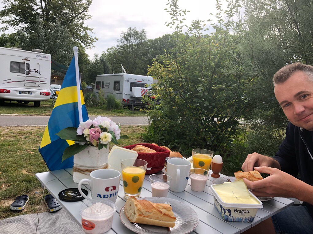Startade morgonen med en bastant frukost – hade beställt både baguett och croissanter i campingreceptionen 😜