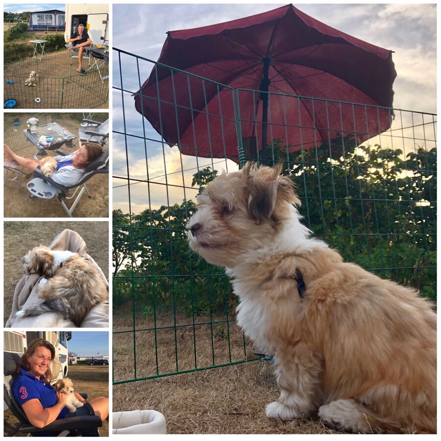 Bingo fann sig som sagt väl till rätta – mycket att lukta på och ännu mer att titta på!!! Bokat en jättebra plats (nr 62), där inte allt för mycket folk går förbi, och med havsutsikt dessutom 👍🏻😊. Fick ju lite hjälp av expertis med att få en bra plats 😝.