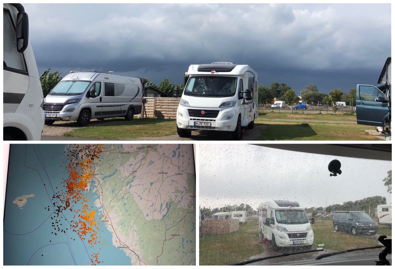 Efter en liten cykeltur rullade det in mörka moln från havet!!! Blev att snabbt hiva in allt i husbilen och gå in och sätta sig