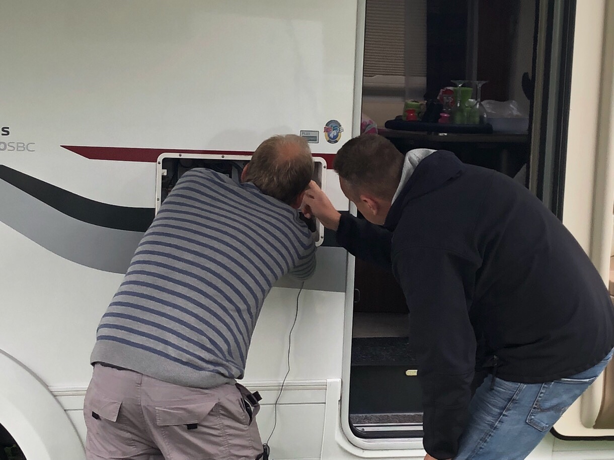 Roger hade lite bekymmer med gasen till sin kyl, de slog sina kloka huvuden ihop för att försöka laga det.