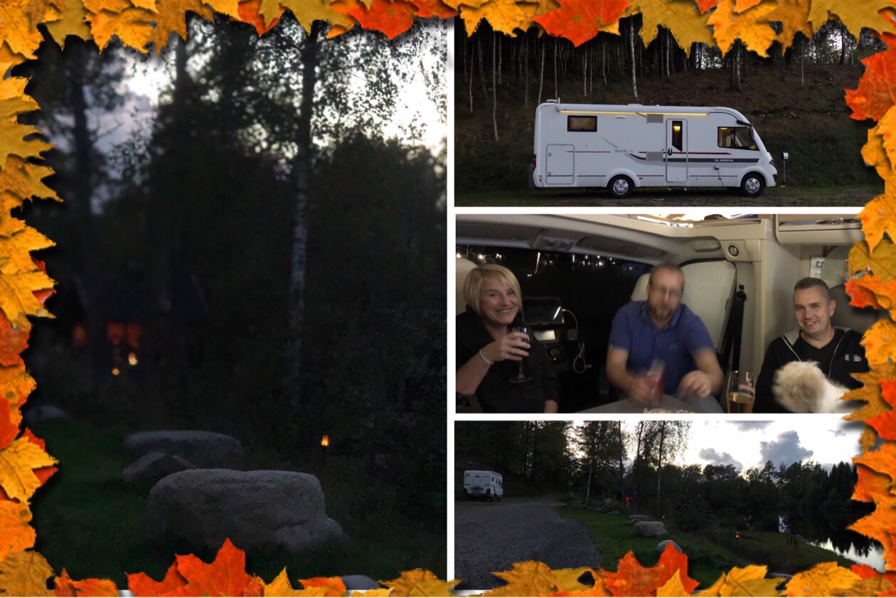 På grillplatsen var det folk som satt och grillade, det var inte många grader ute ska jag säga!! 4 grader på sin höjd, men gissar de värmde sig mer av drickan de hade i glasen än av elden 😂😂😂. Vi hamnade i Jonny och Lindas husbil som oxå tagit sig hit, 4 pers och 3 hundar 🐾🐶