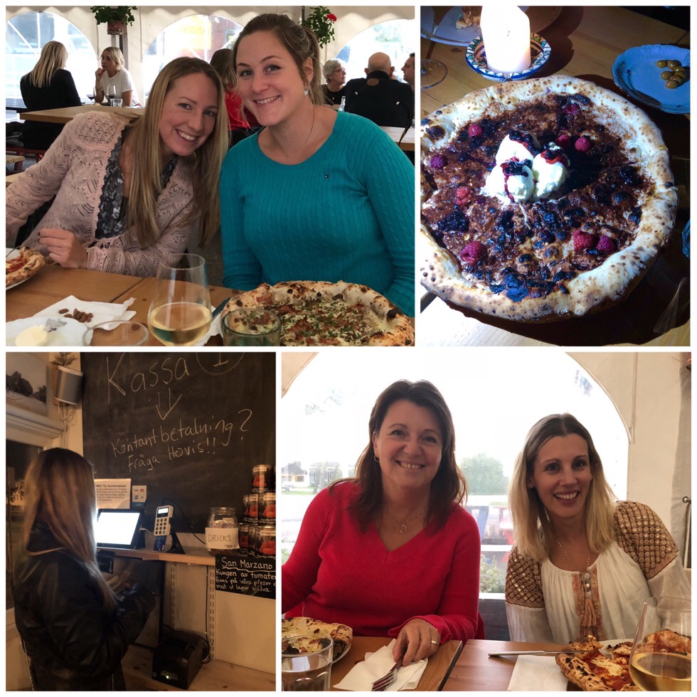 Lilla Napoli ja… på utsidan ser det ju inte mycket ut för världen!!! Men jisses va goa pizzor de hade!! Förstår nu varför det i stort sett alltid är fullbokat! Jag som aldrig annars äter upp en hel pizza, gjorde just det, och glömde bort att de oxå hade efterrättspizza. Anna och Katarina beställde den (ja, de delade alltså på en) den luktade gudadott!! 😍 men jag orkade inte ens smaka en enda liten bit!! Annars: choklad, vaniljglass och bär – på pizza 🤤❤️.
