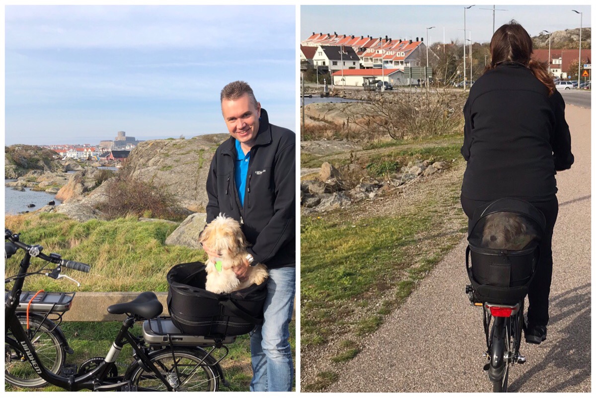 Efter att picknickväskan var packad, tryckte vi ner Bingo i cykelkorgen och for iväg.
