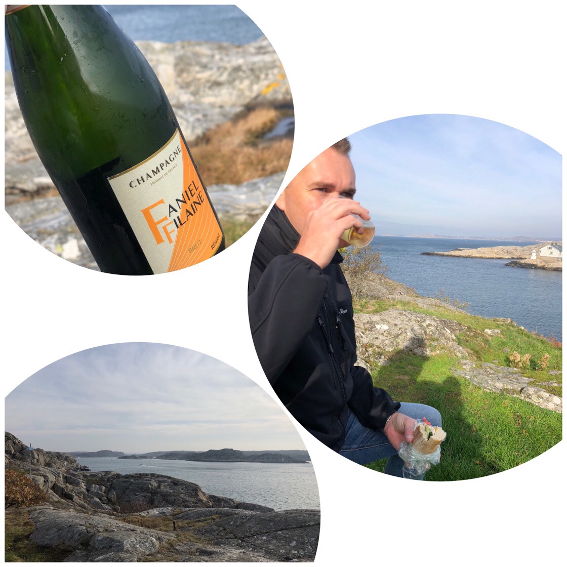 Strax efter ”nålsögat” stannade vi och packade upp picknickväskan – kycklingbaguett och lite bubbel satt som en smäck! 🍾