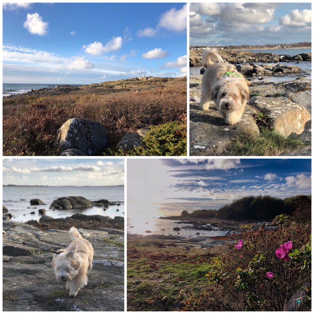 Och bara på den lilla rundan vi gick, var det både hav och skog! Ja….. så djup skog pratar vi ju inte om här 😂, men om inte skog, så en stor grupp träd av olika slag i alla fall 😂