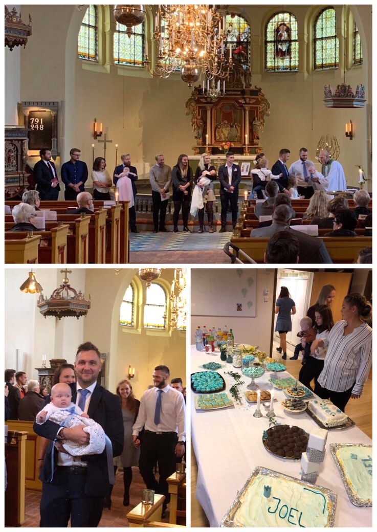 Idag gick vi upp tidigt och satte fart, för Jonas (Mickes bror) lilla Joel skulle döpa sej i Harplinge kyrka.