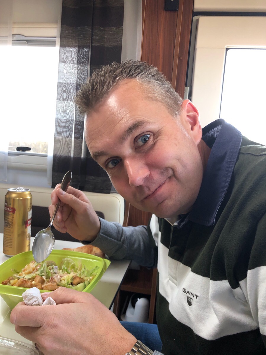 I förmiddags var vi och hämtade hem husbilen, och strax efter kl 1 rullade vi iväg på premiärturen🎉🎉🎉